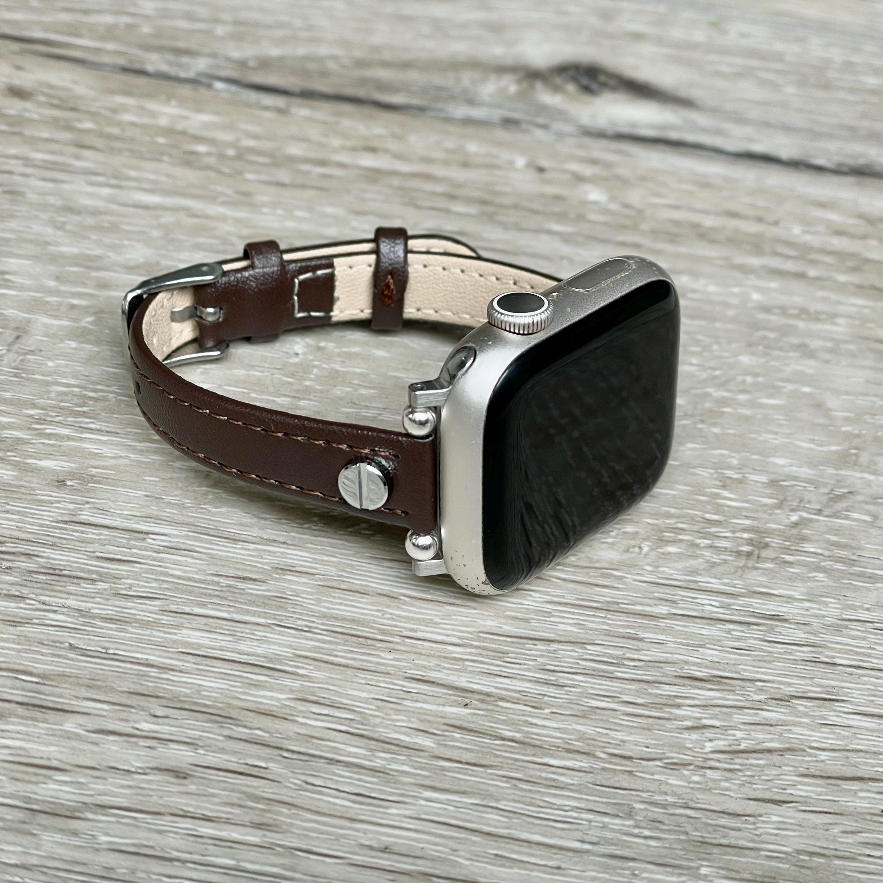 Slim Brown Genuine Leather Apple Watch Band Women Strap Bracelet 46mm 42mm Ultra