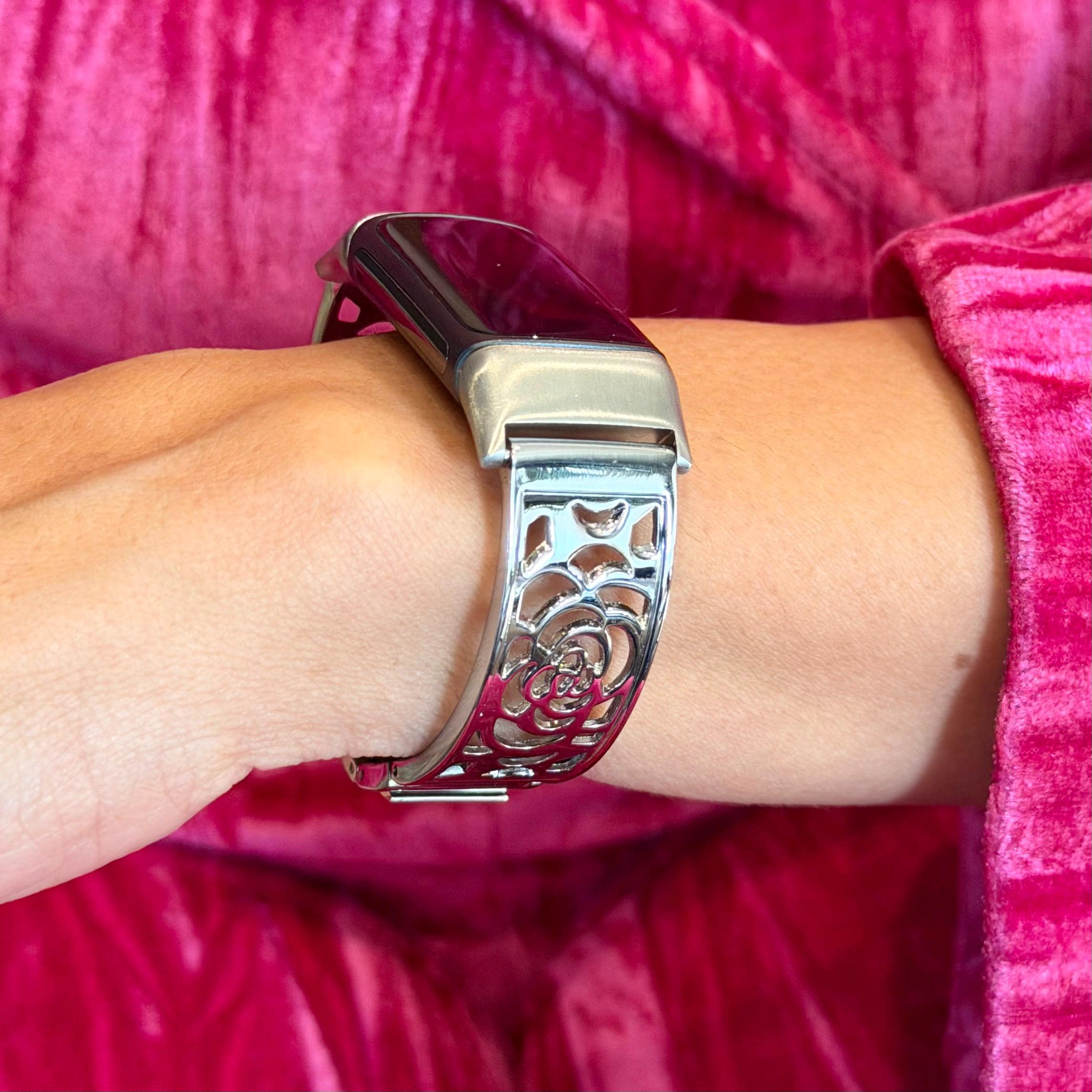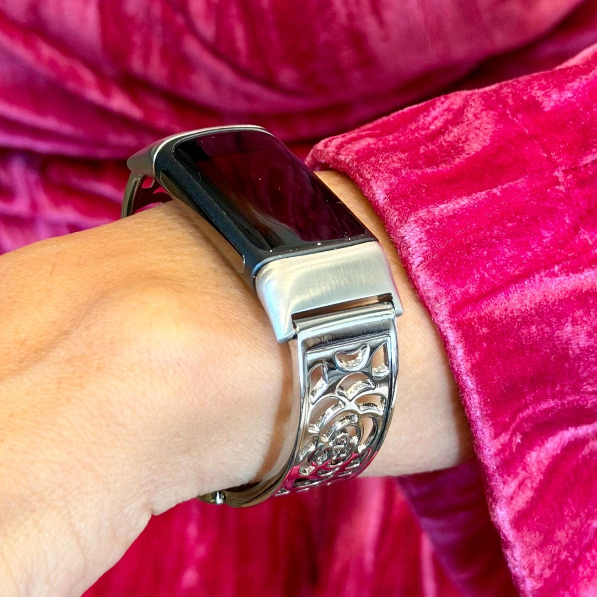 Fitbit Charge 6 Band Silver Bangle Women Bracelet Jewelry Strap.