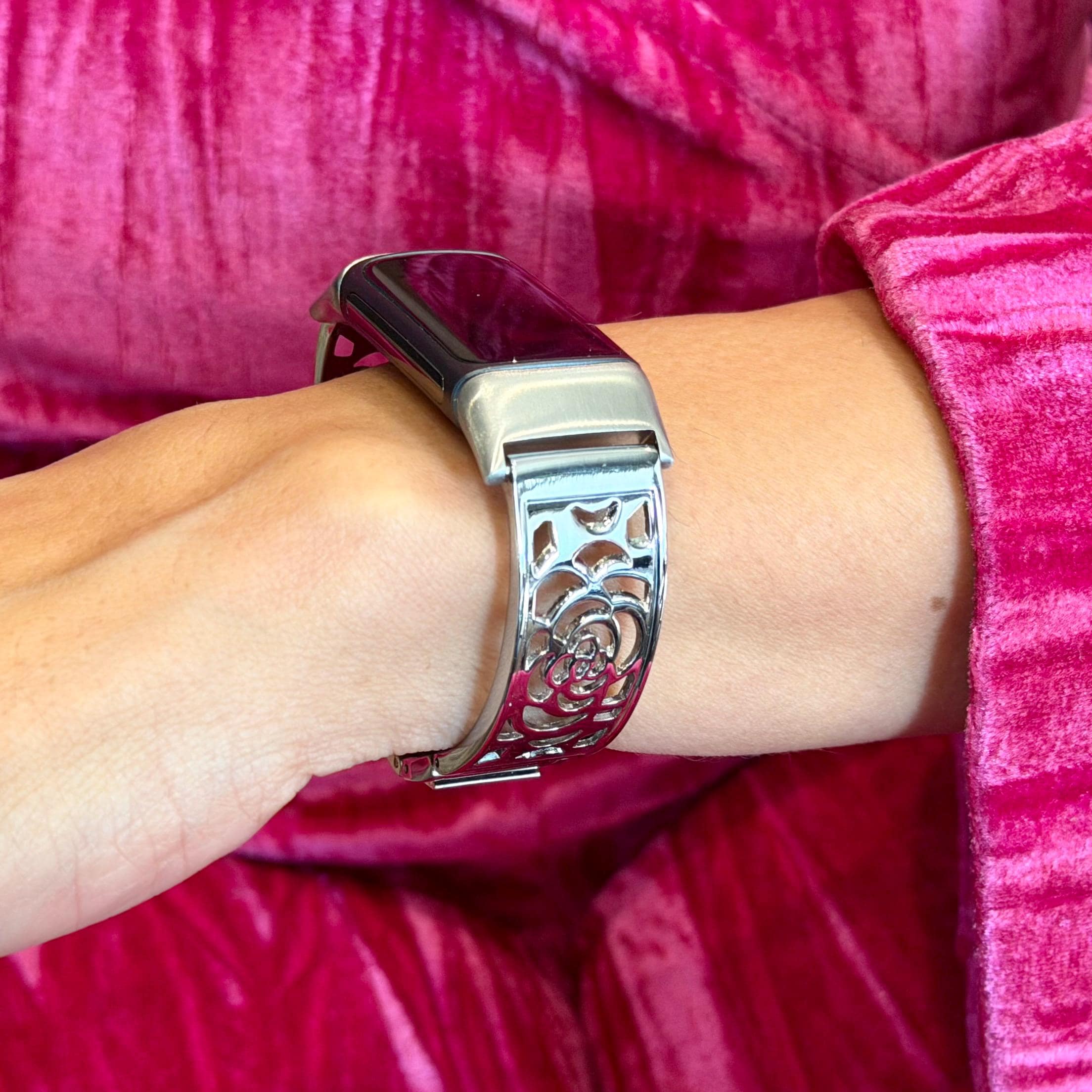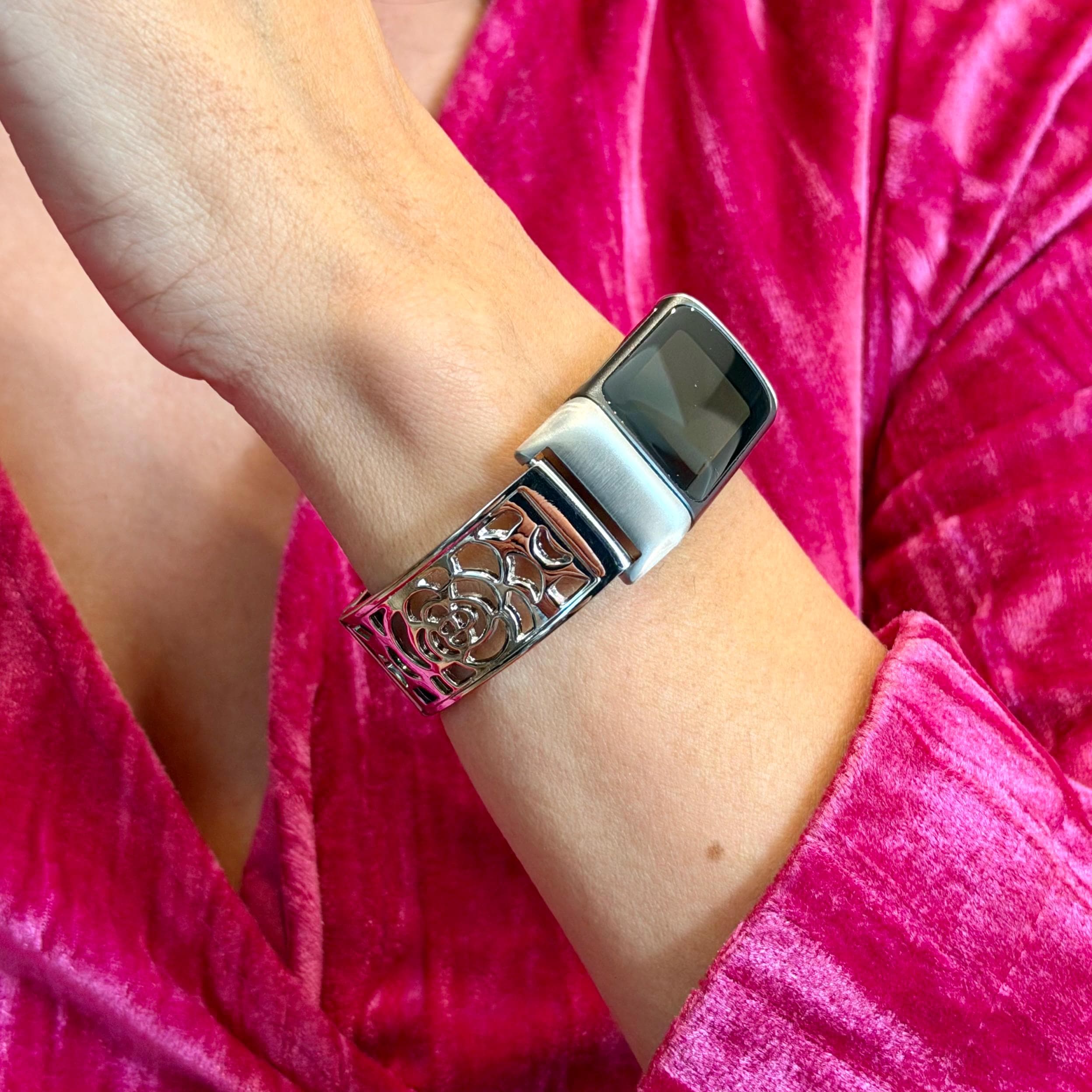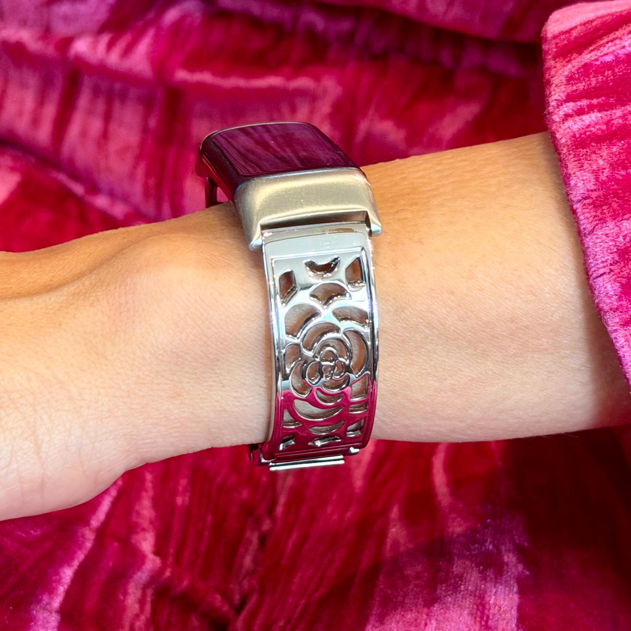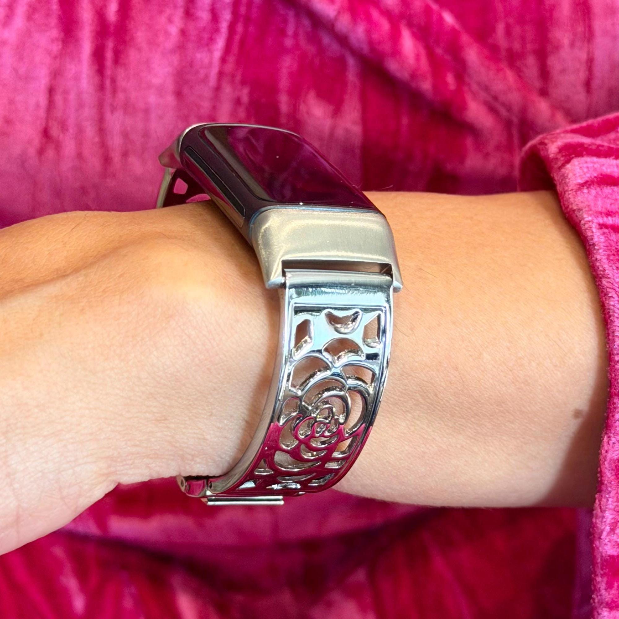 Silver Fitbit Charge 6 Band Women Bracelet Jewelry, Adjustable Links Bangle.