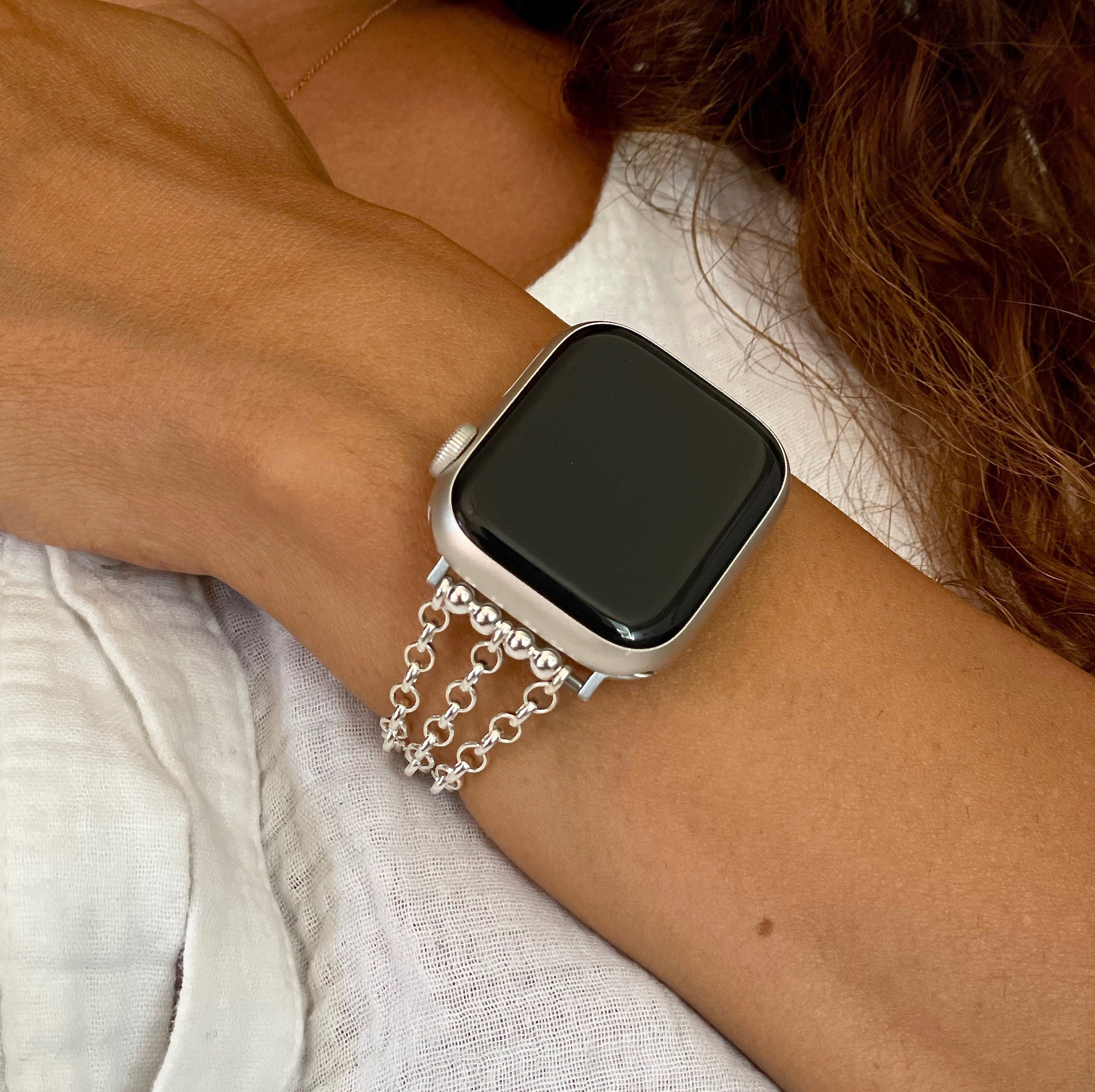 Sterling Silver Apple Watch Band: Rolo Chain Bracelet, Women's Strap Jewelry