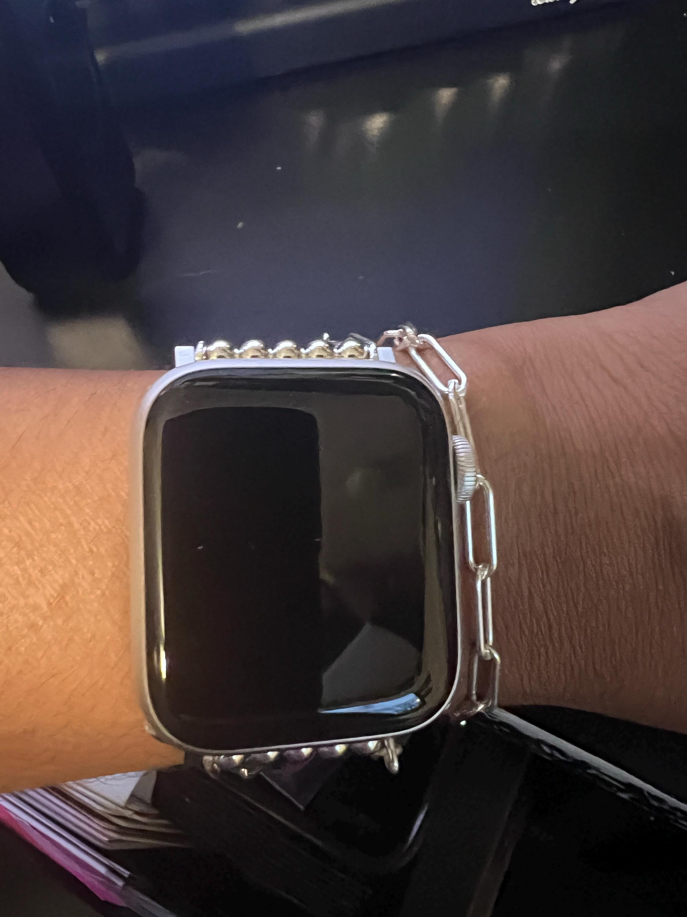 this wristband is really cute and fits in with all my other jewelry! not to mention really comfortable, compared to the band that came with the apple watch. plus I love how you put it on with a strong magnet, that way it’s easy to put it on by yourself