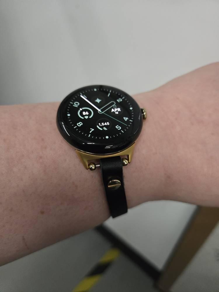 Black Leather Google Pixel Watch 2 Band: Slim Minimalist Strap, Gold Accents Bracelet