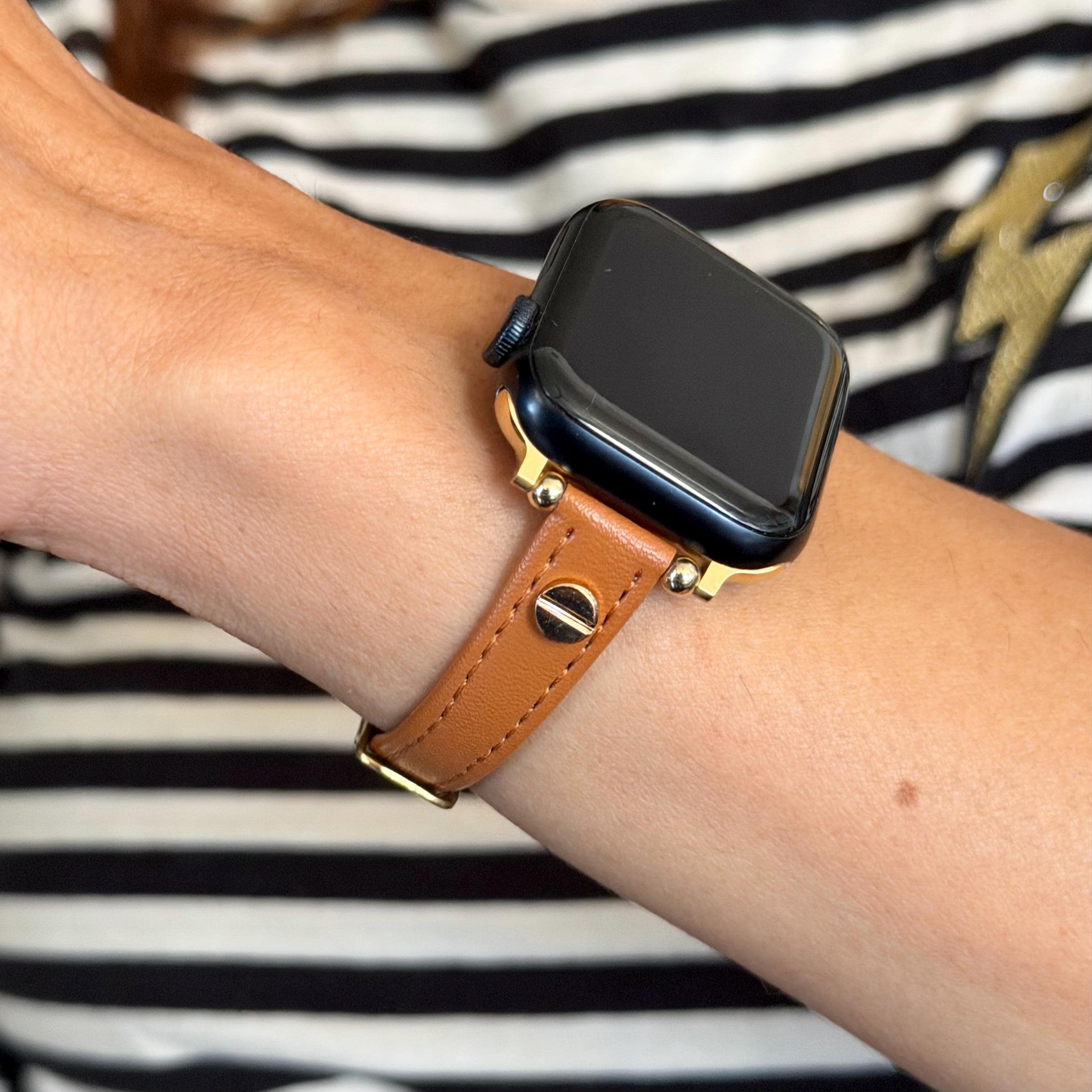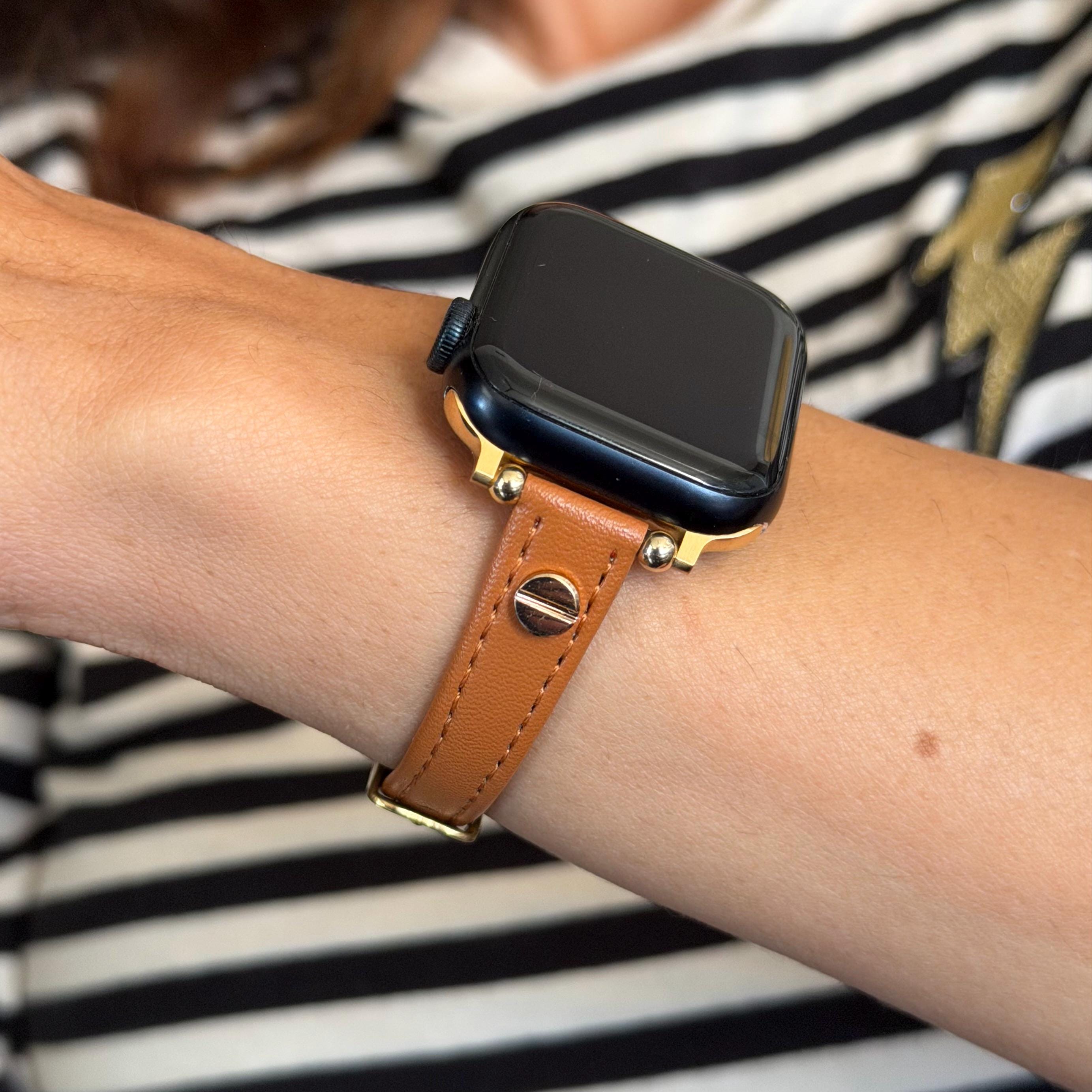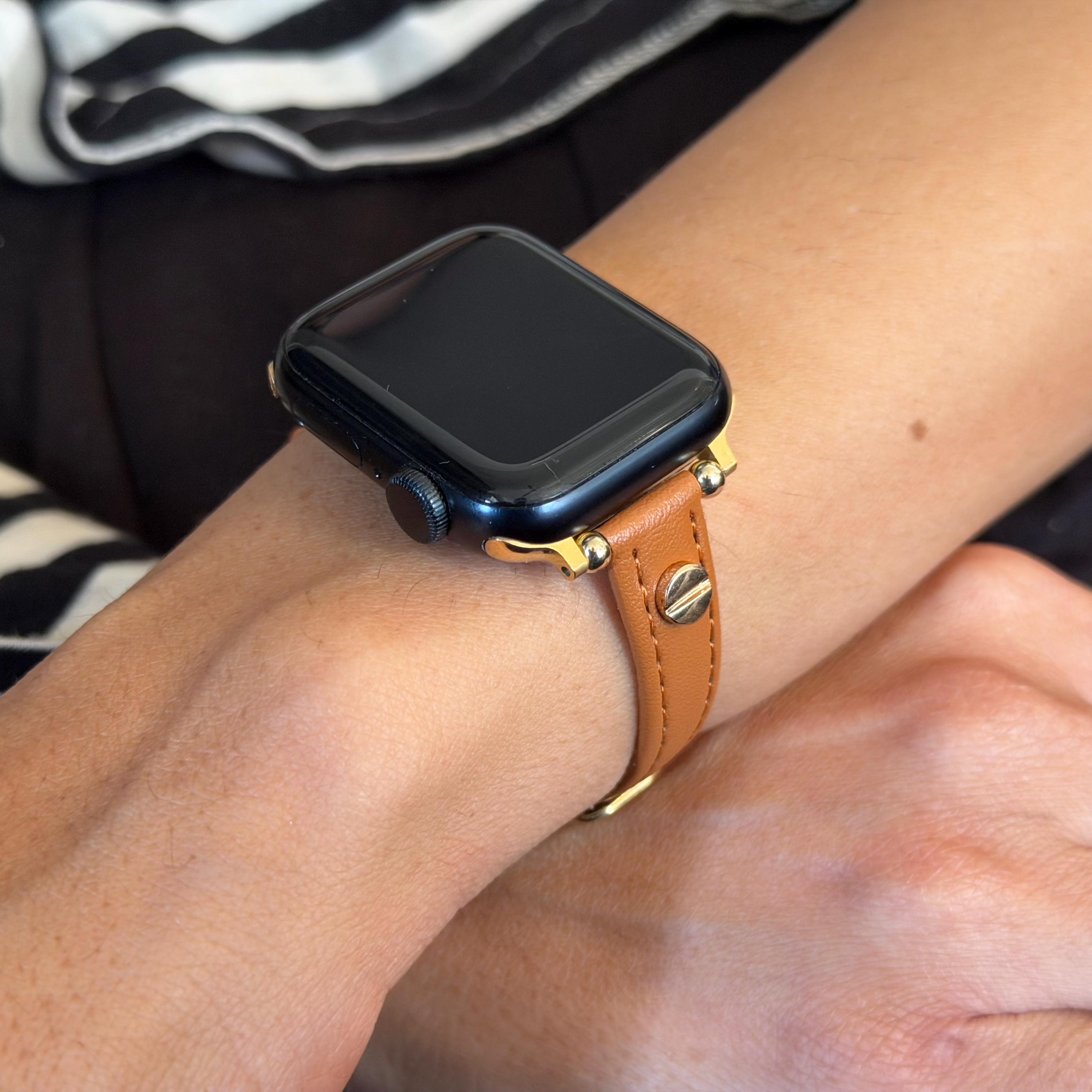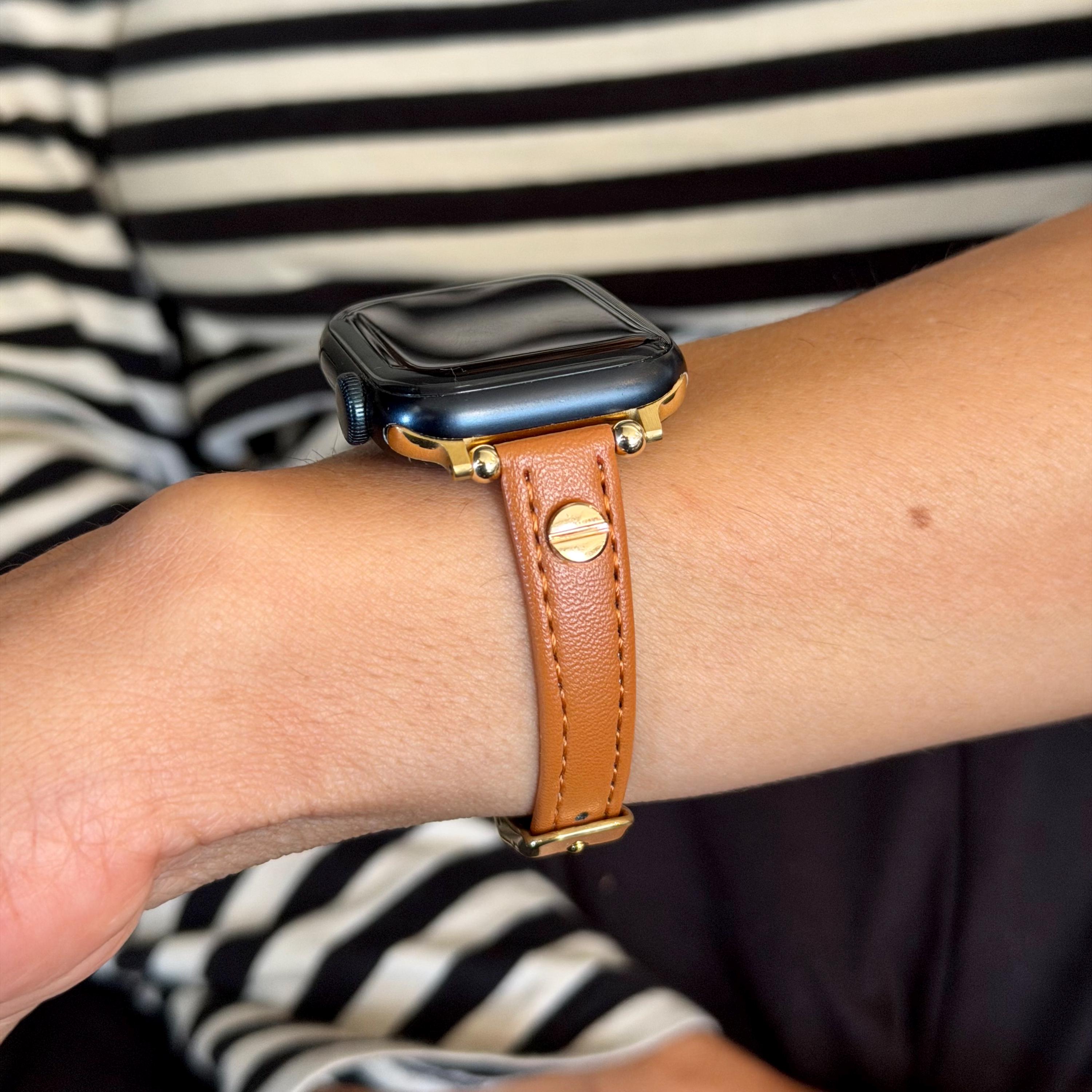Slim Leather Apple Watch Band 42mm 46mm 41mm 45mm Strap, Gold Women Bracelet