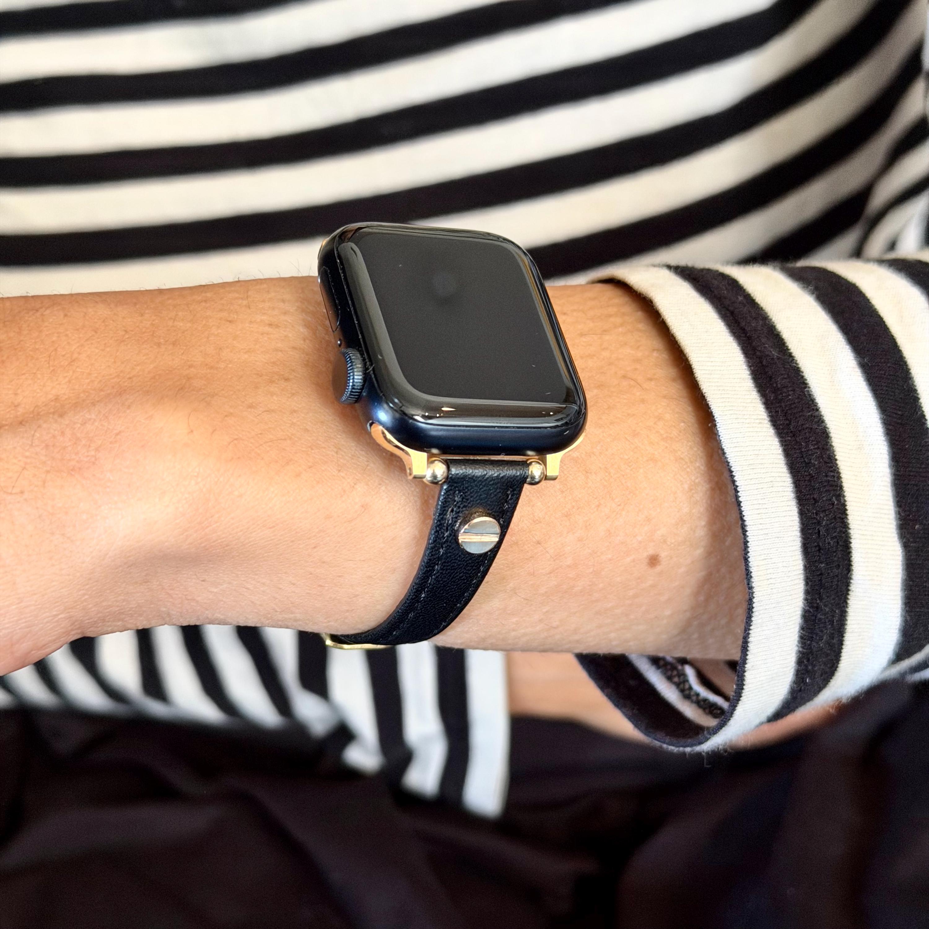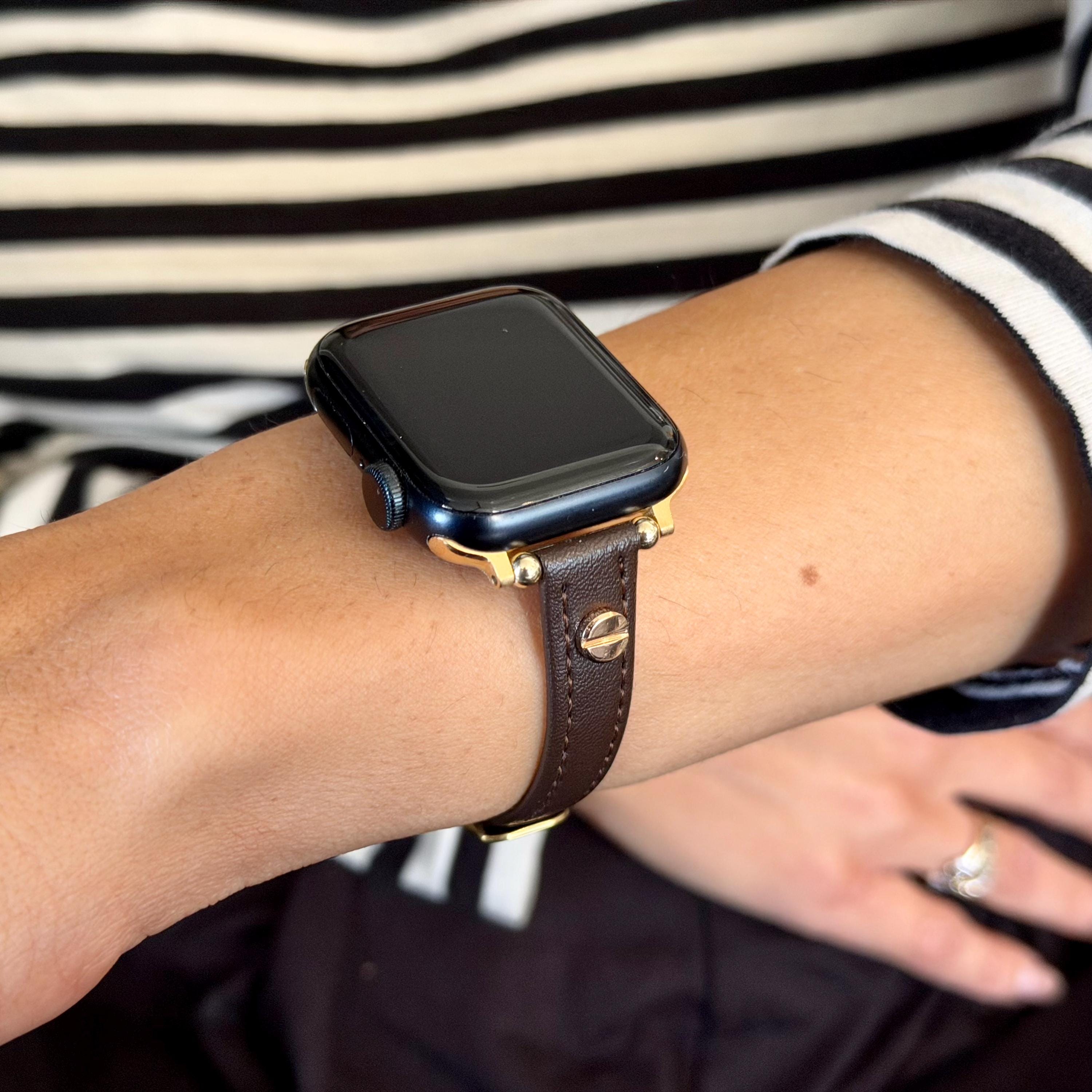 Slim Leather Apple Watch Band 42mm 46mm 41mm 45mm Strap, Gold Women Bracelet.