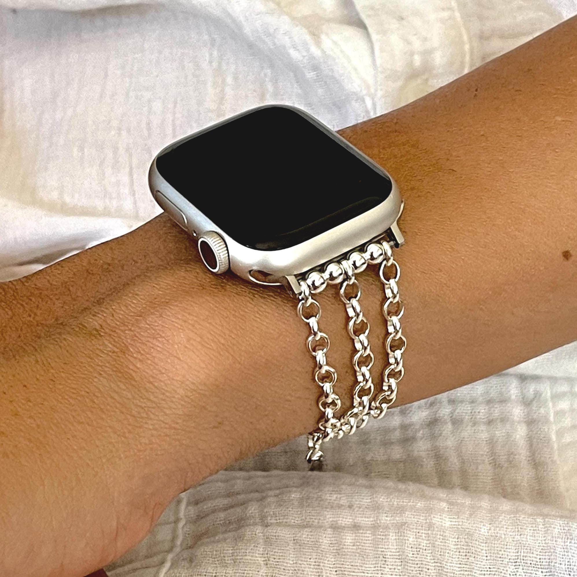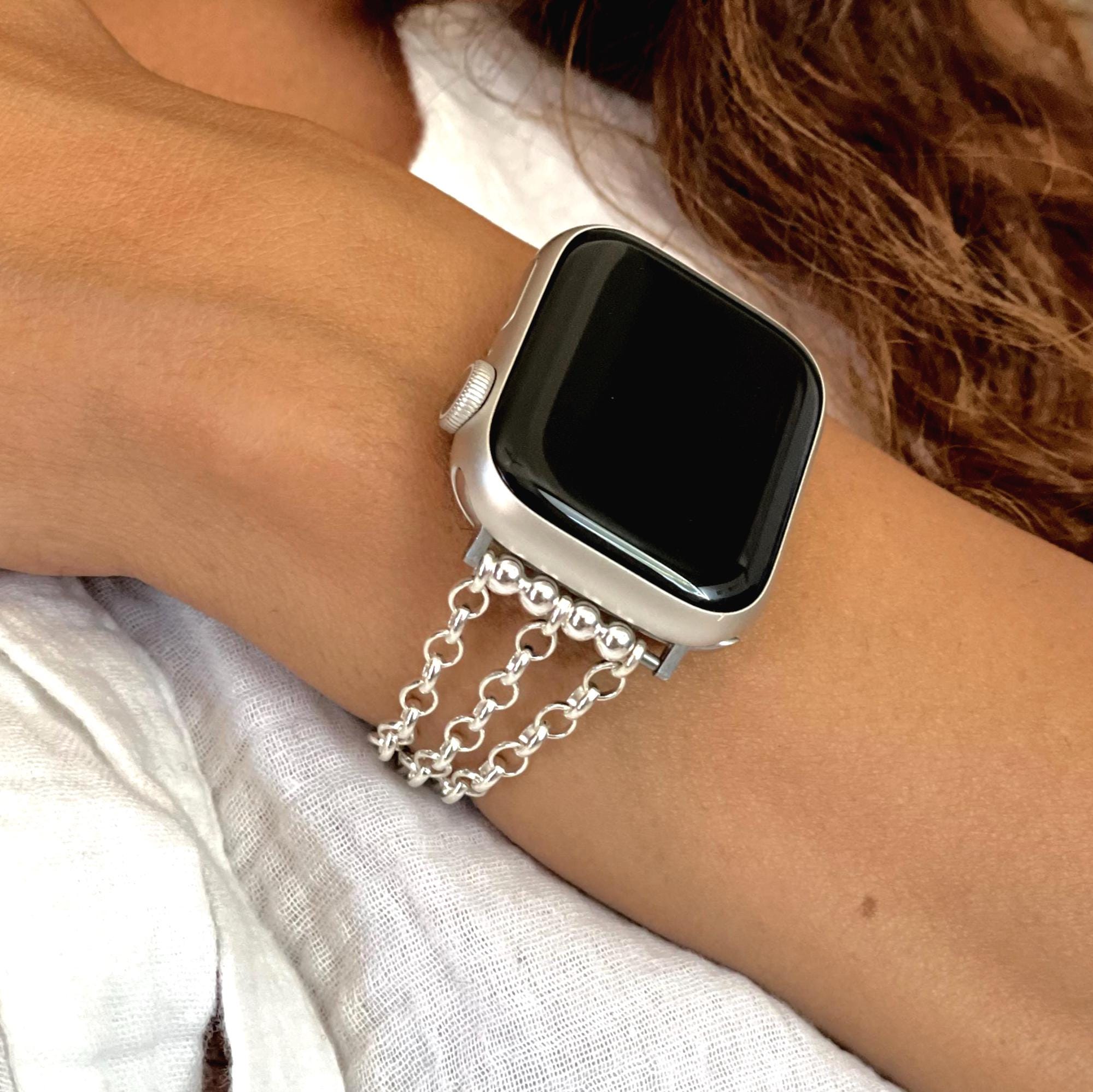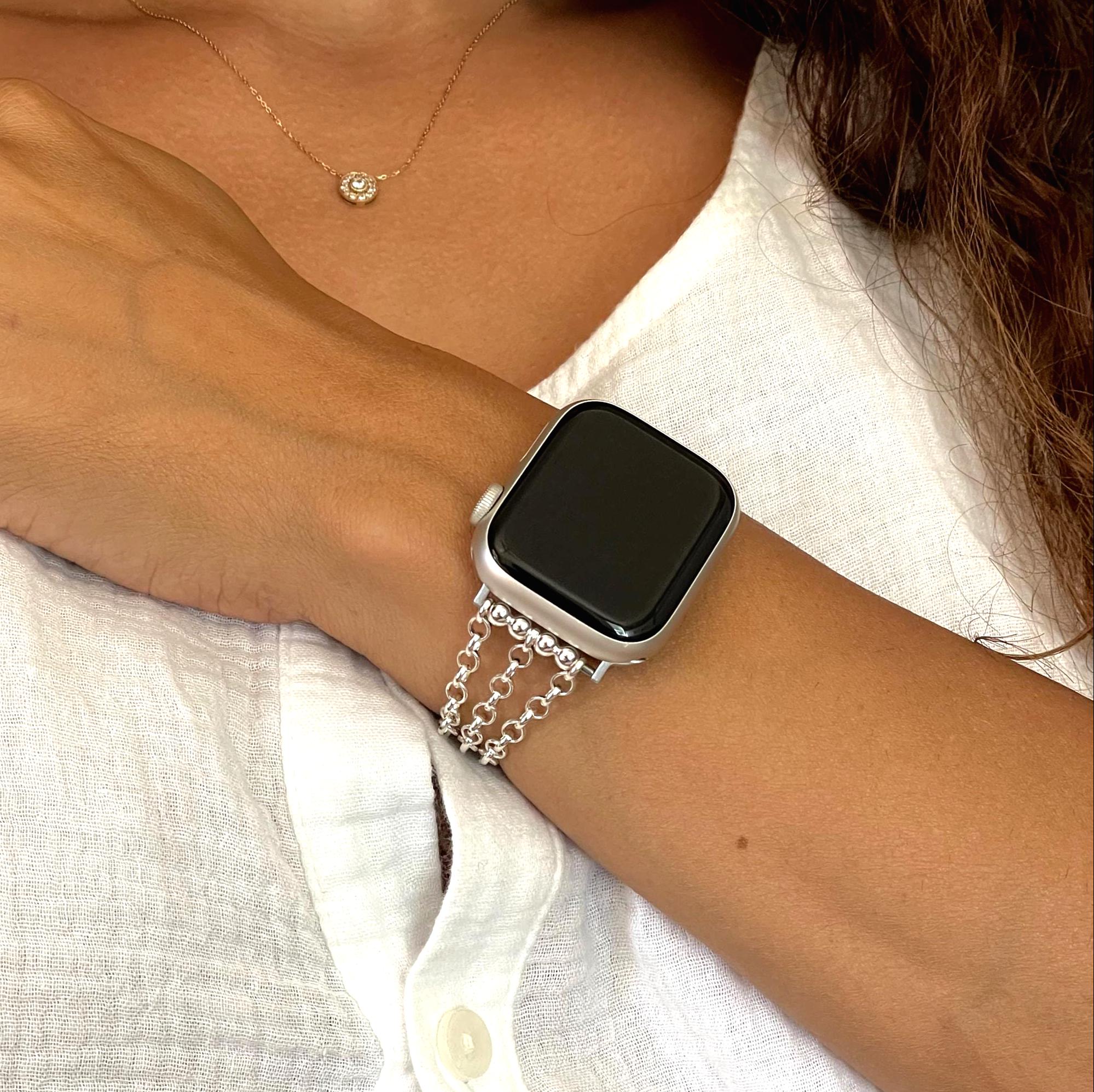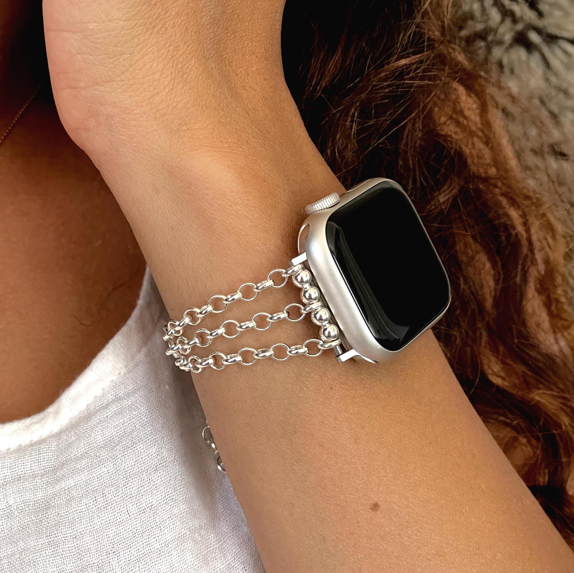 Sterling Silver Apple Watch Band Chain Strap Bracelet, Luxury Women's Jewelry