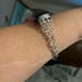 Arrived quickly. Looks good. I have enough give to slide it off at night (undoing clasps is difficult for me) but it is also small enough to be secure on my arm all day.