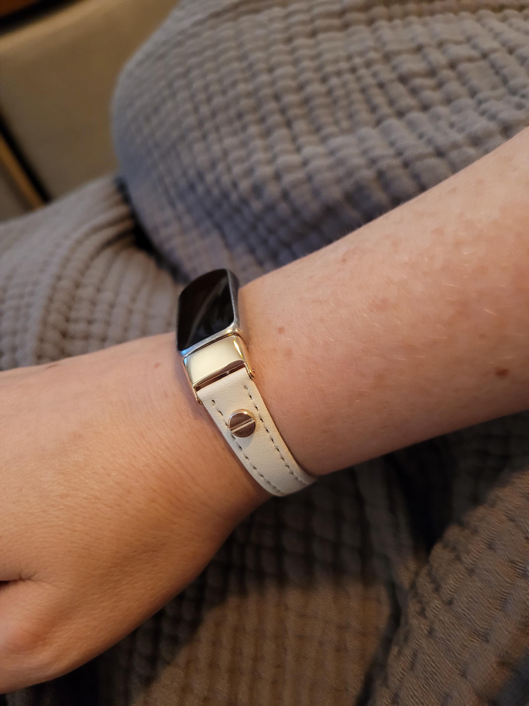 Fitbit Luxe Band: Slim Leather Bracelet with Gold Accents, Adjustable Strap for Women