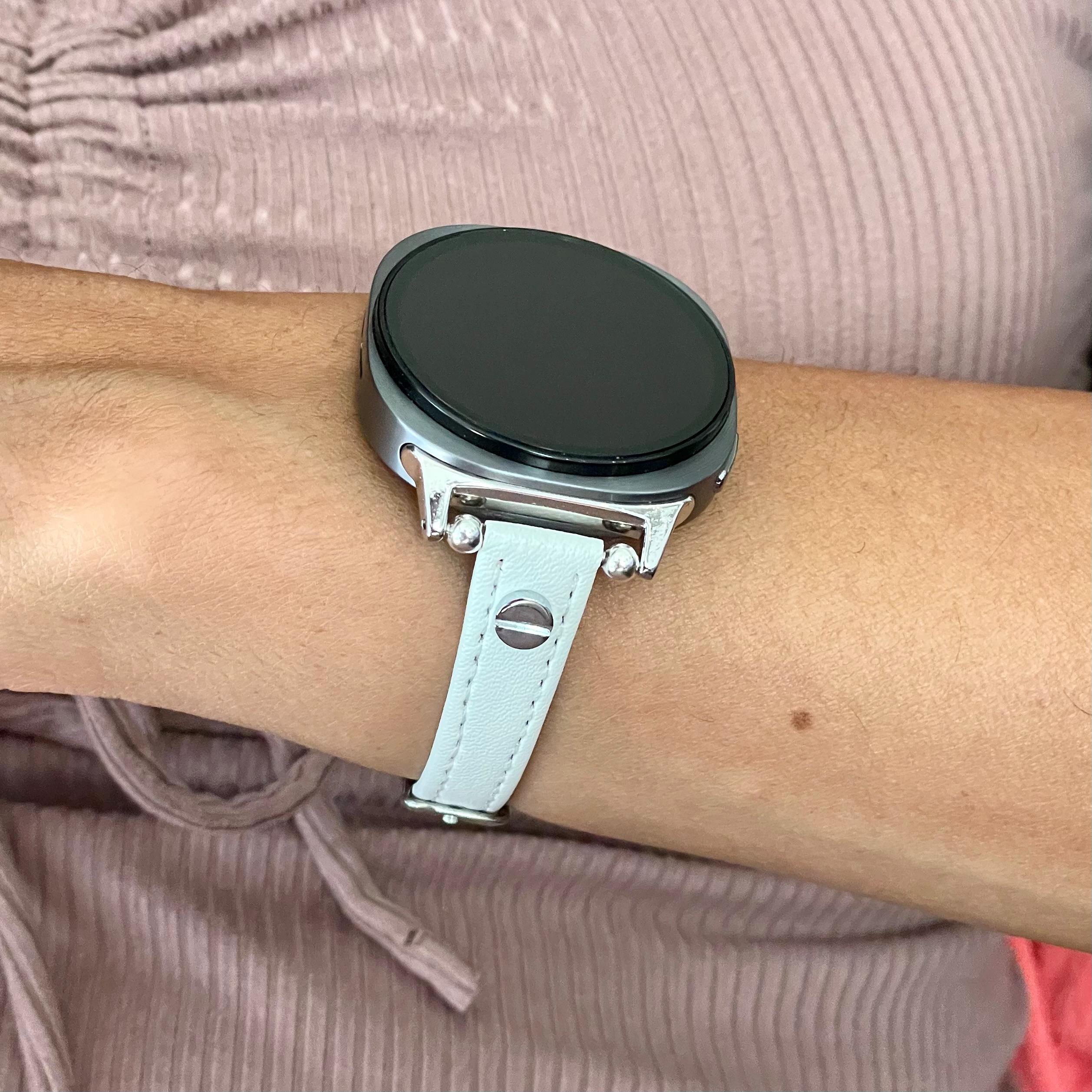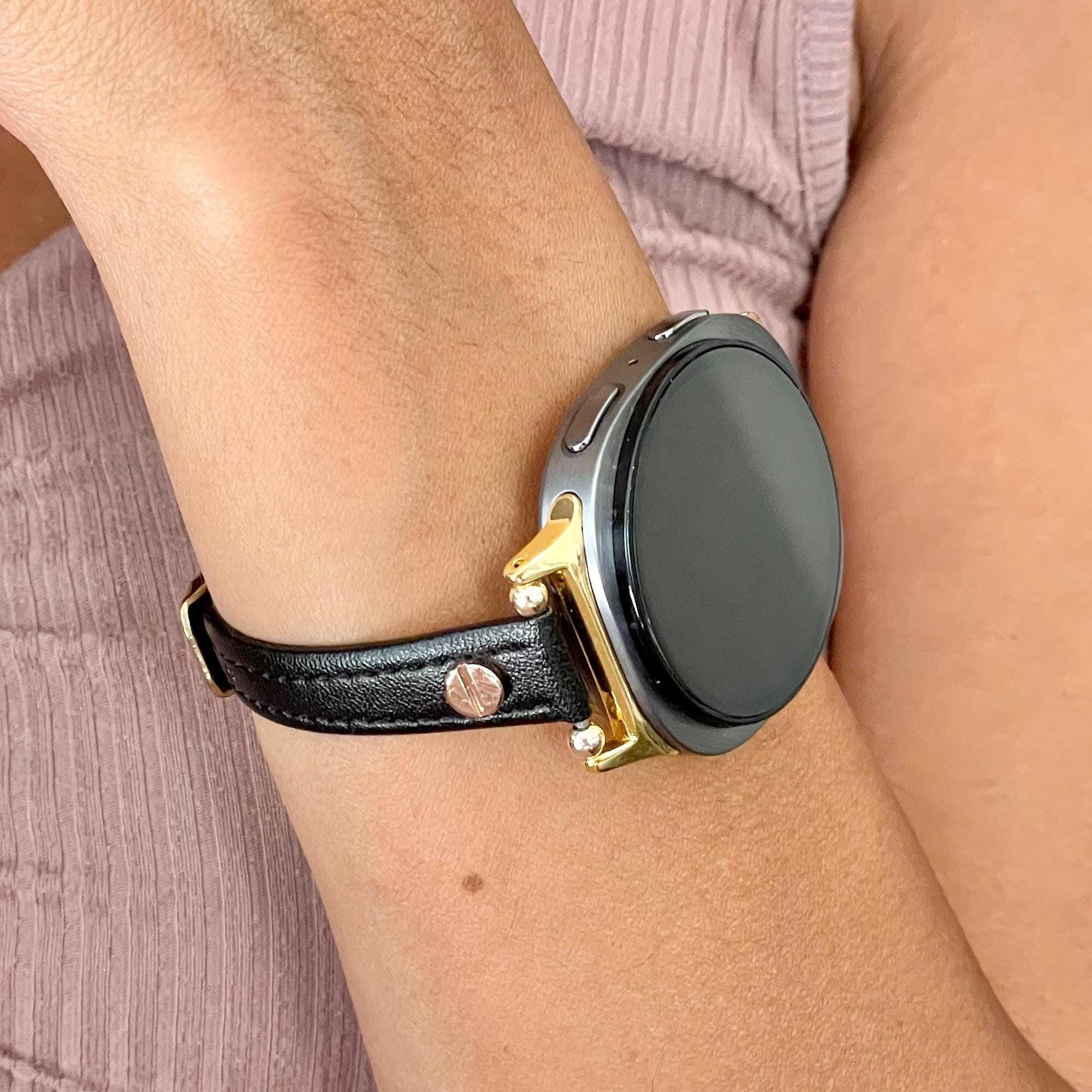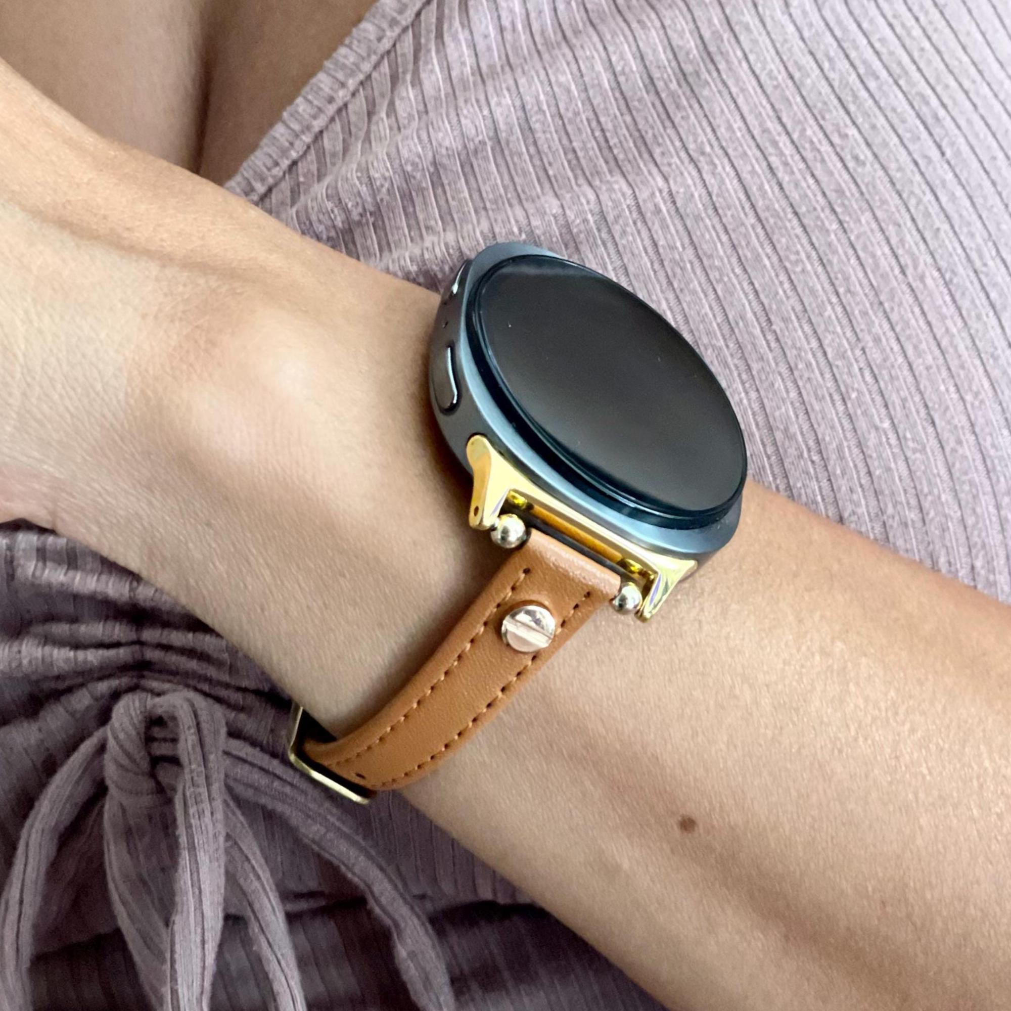 Galaxy Watch 8 Leather Band - Slim Adjustable Bracelet Strap, Silver or Gold Accents (Classic)