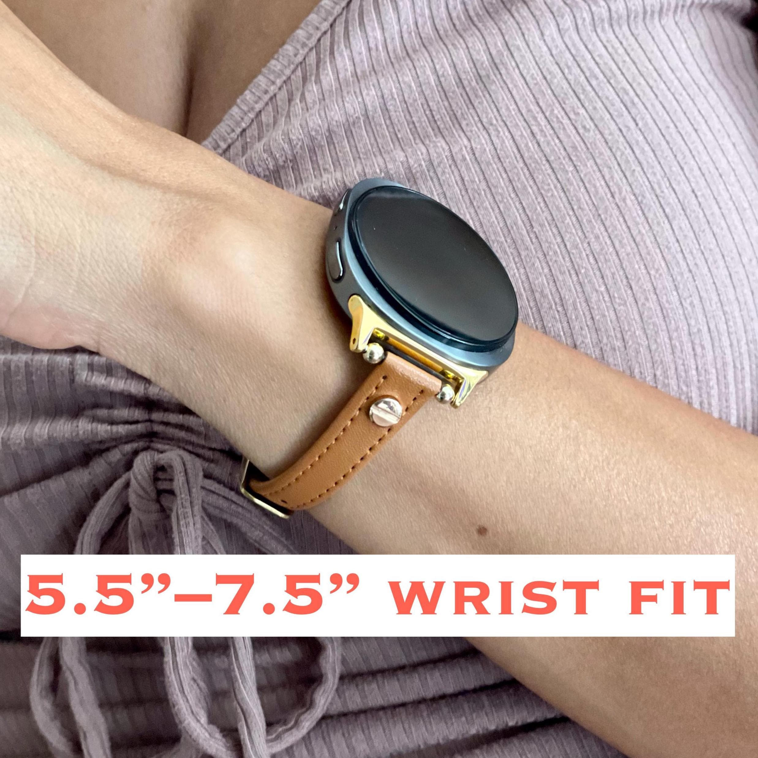 Slim Leather Band for Galaxy Watch 8 & 8 Classic, Adjustable Strap, Silver or Gold Hardware