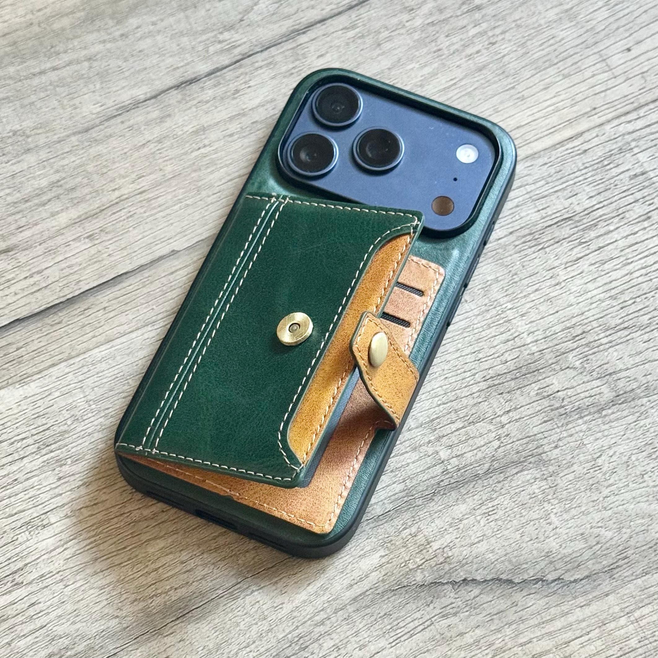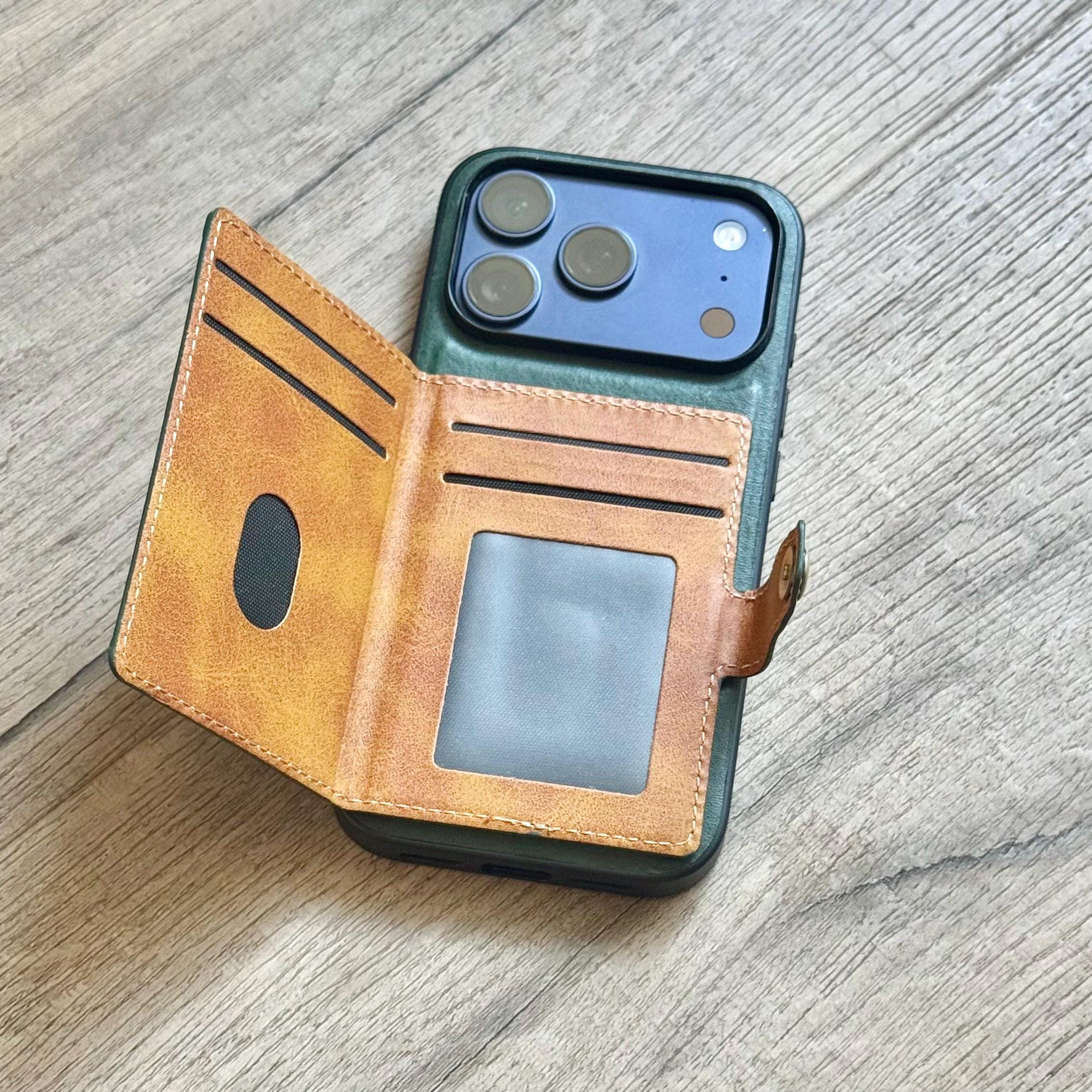 Personalized Leather iPhone Case 17 16 15 14 13 12 with Wallet.