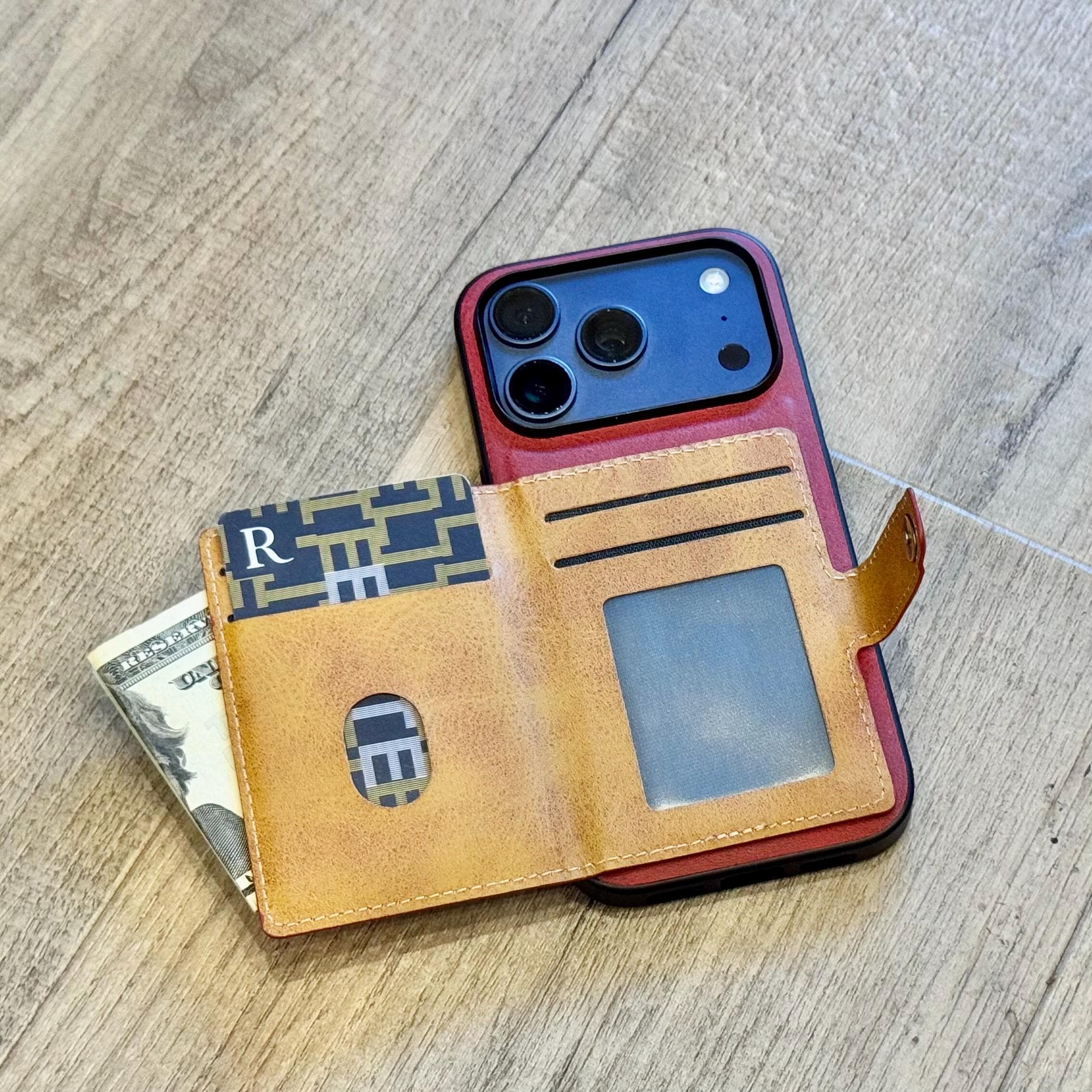 Leather Wallet iPhone Case 17 16 Pro 15 Max 14 Plus Air - Personalized Card ID Holder & Cash Pocket