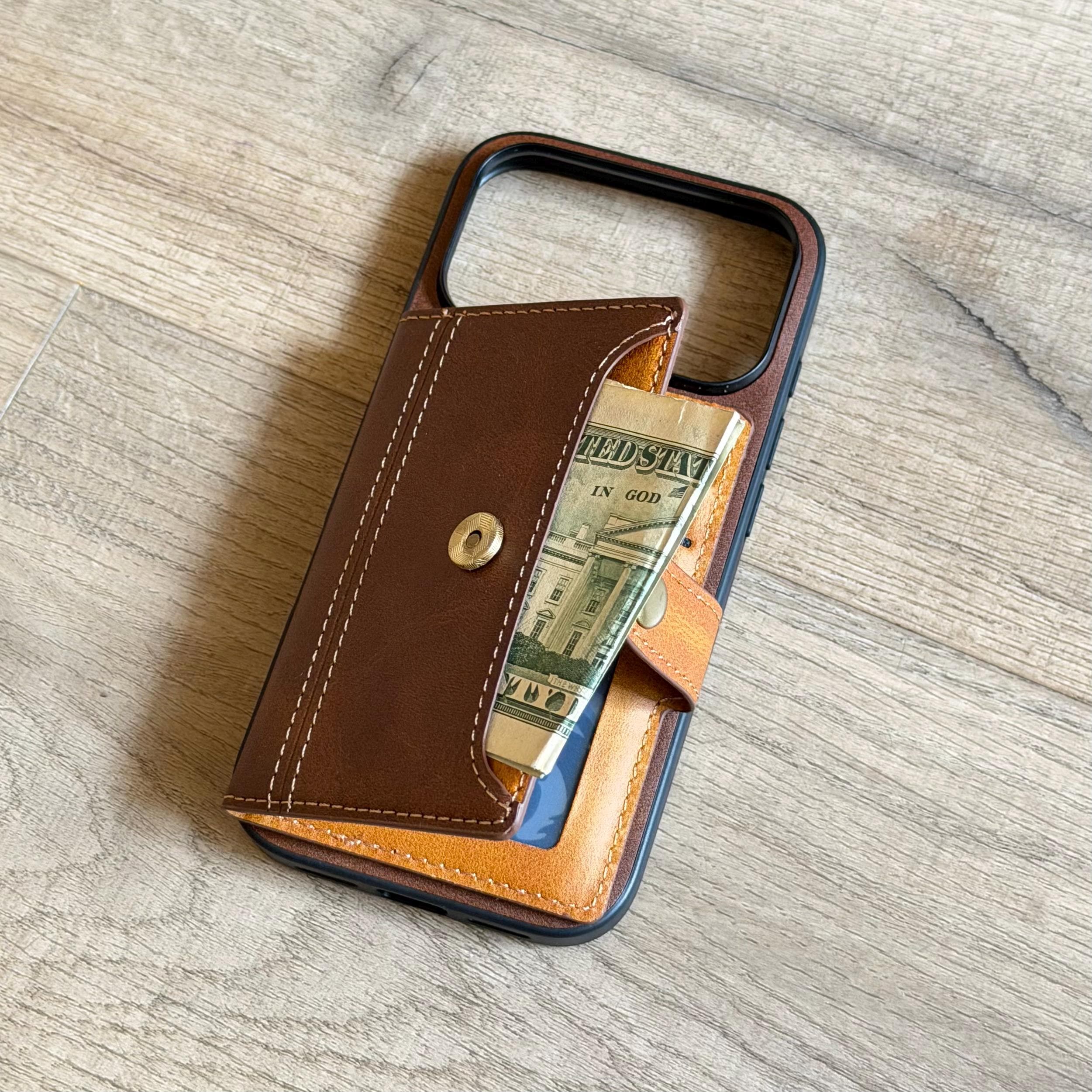 Personalized Leather Wallet iPhone Case 17 16 Pro 15 Max 14 Plus Air - Card ID Holder & Cash Pocket