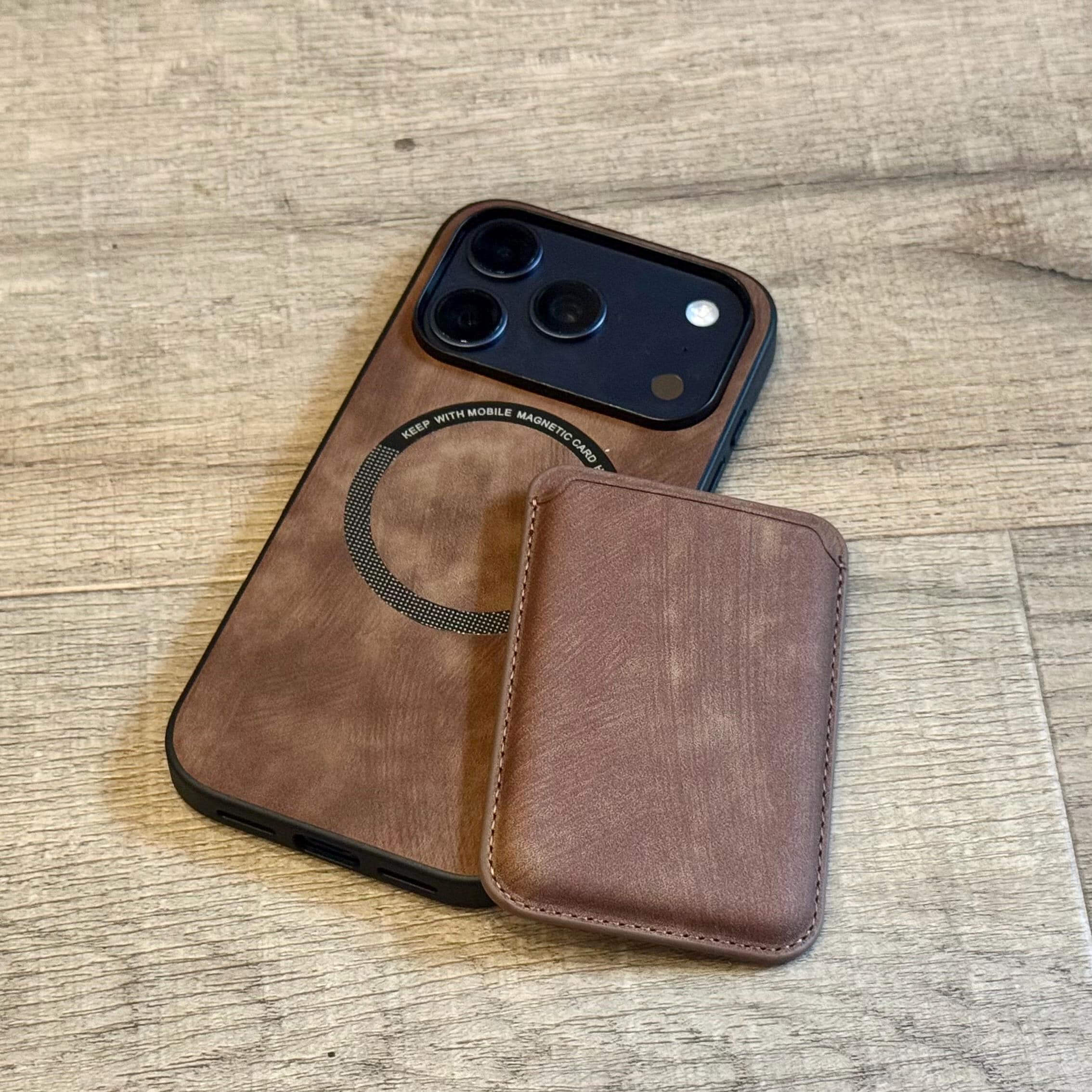 Add elegance and function to your everyday carry with this leather iPhone case and magnetic wallet set.