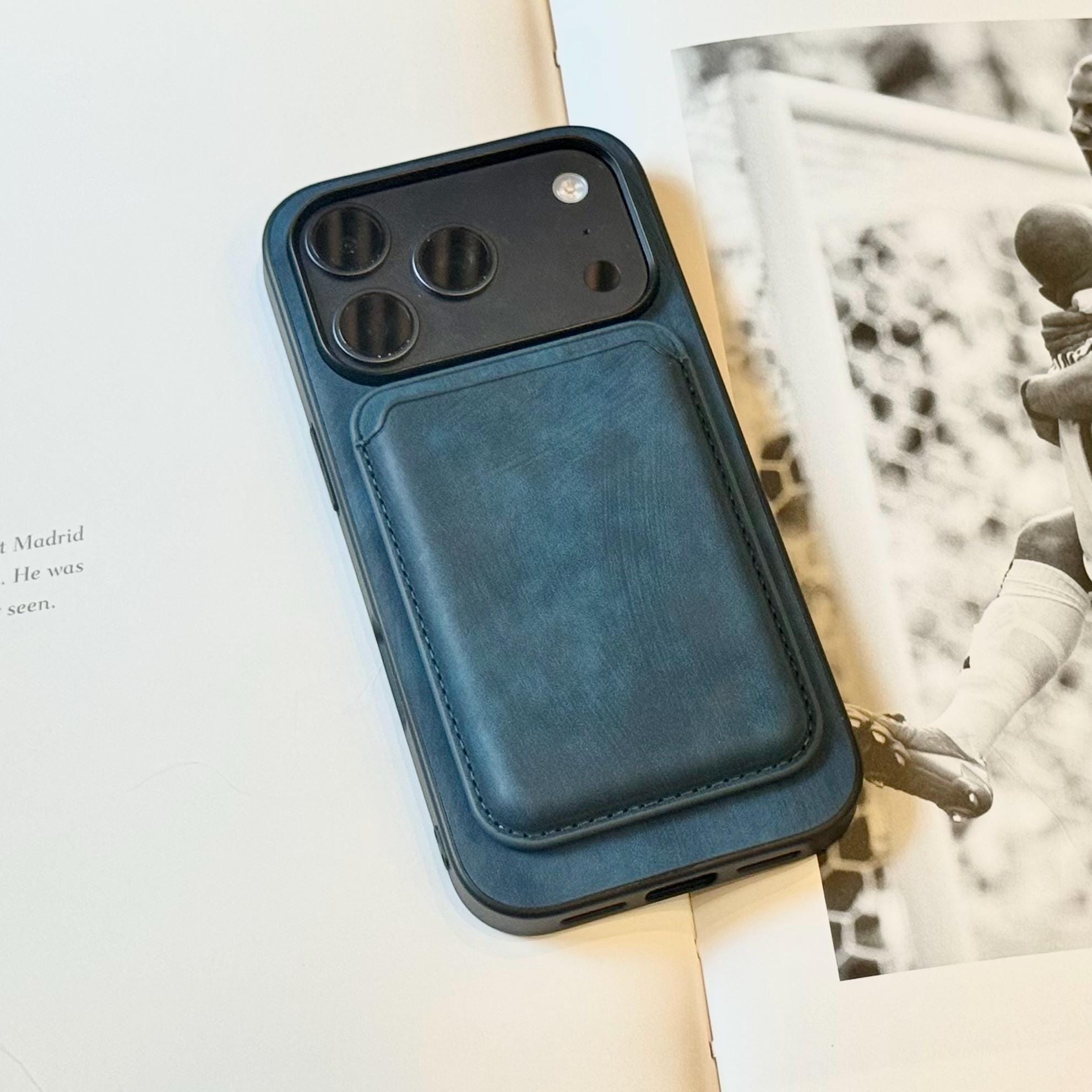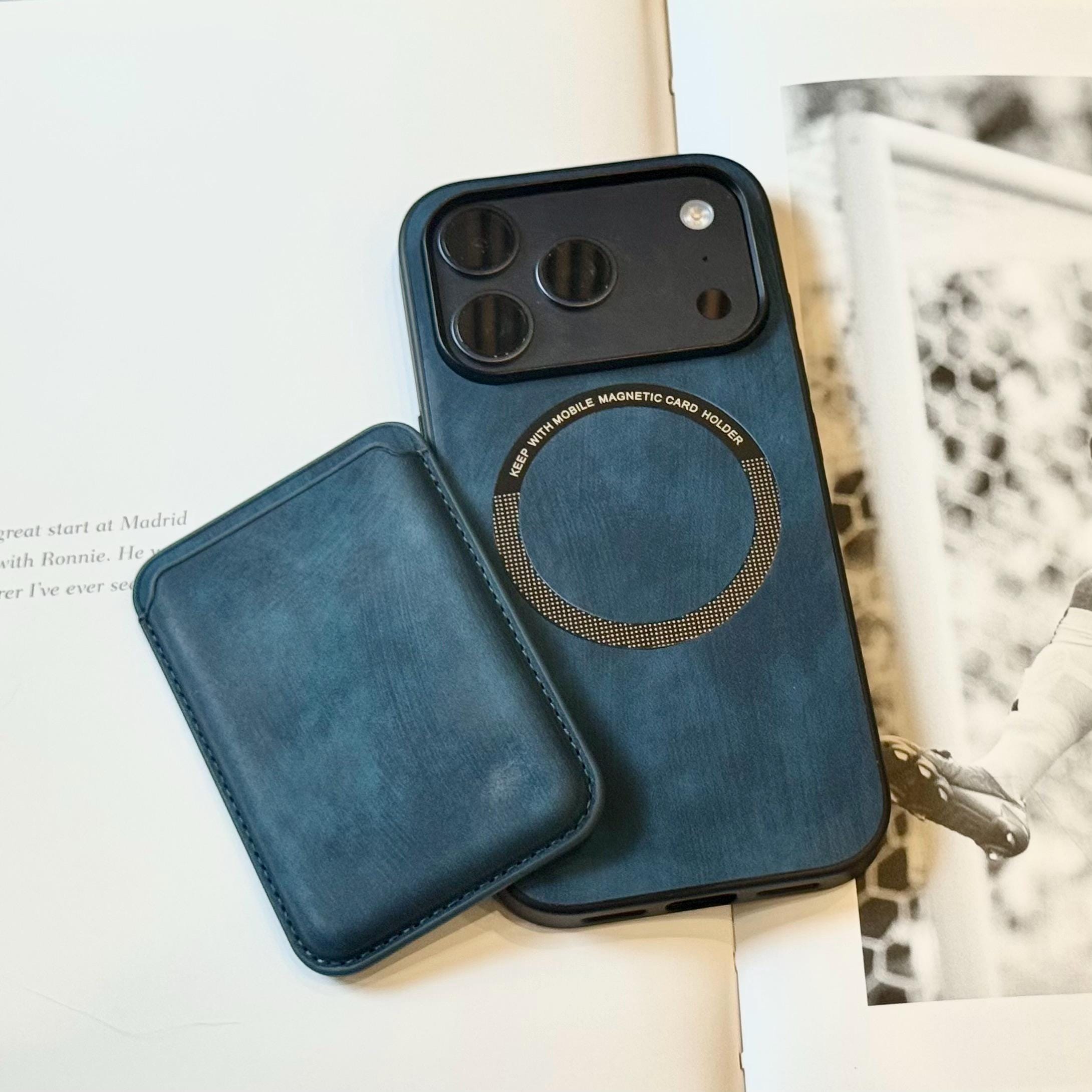 The detachable magnetic wallet securely holds 2–3 cards or folded cash and snaps on with precision alignment. Both pieces share the same rich blue tone and soft-touch texture for a cohesive, stylish look.