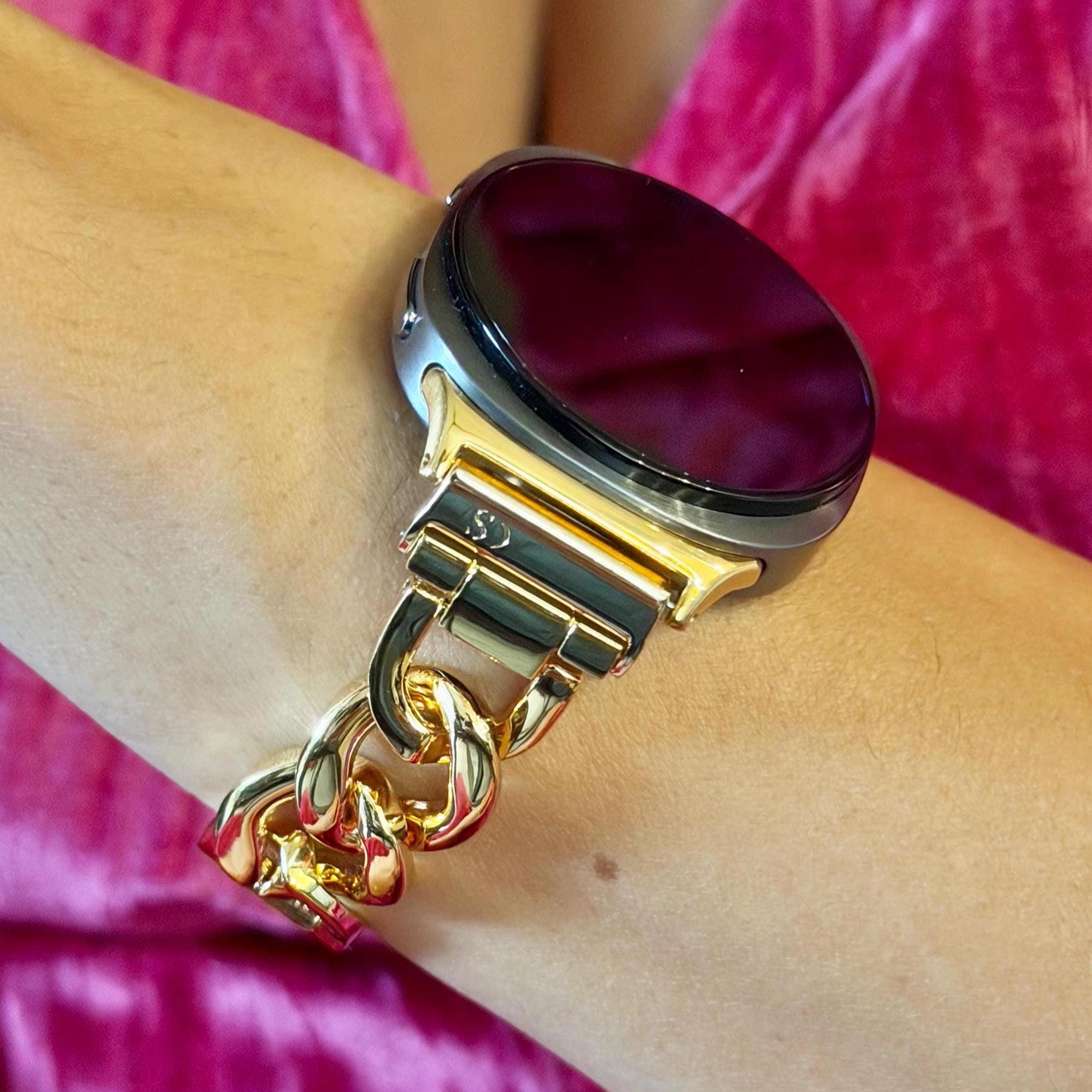 Women Samsung Galaxy Watch 8 Band Gold Charm Bracelet, Adjustable Links Strap Jewelry