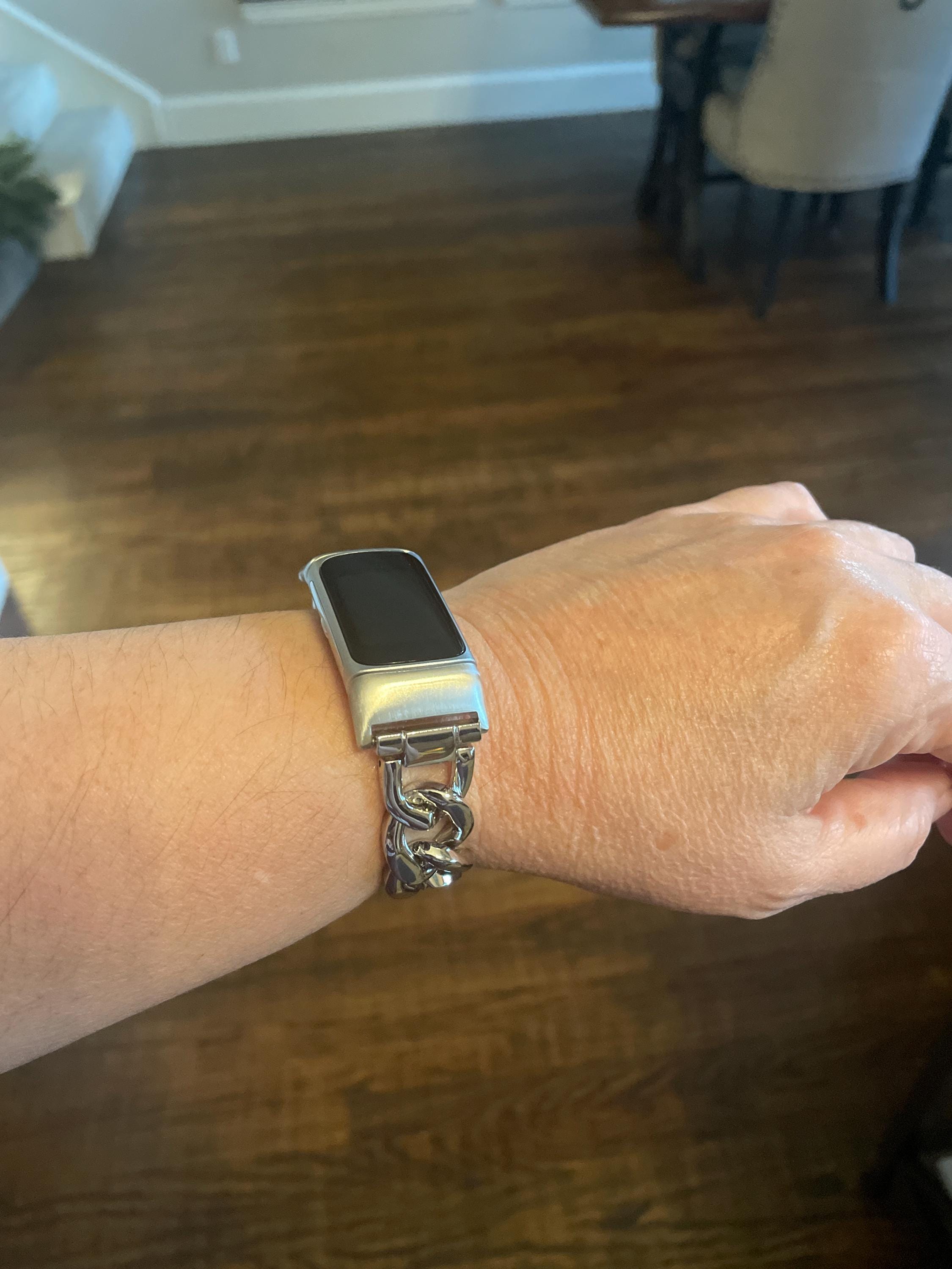 Women Fitbit Charge 6 Band Silver Chain Bracelet Jewelry, Adjustable Links Metal Wristband!