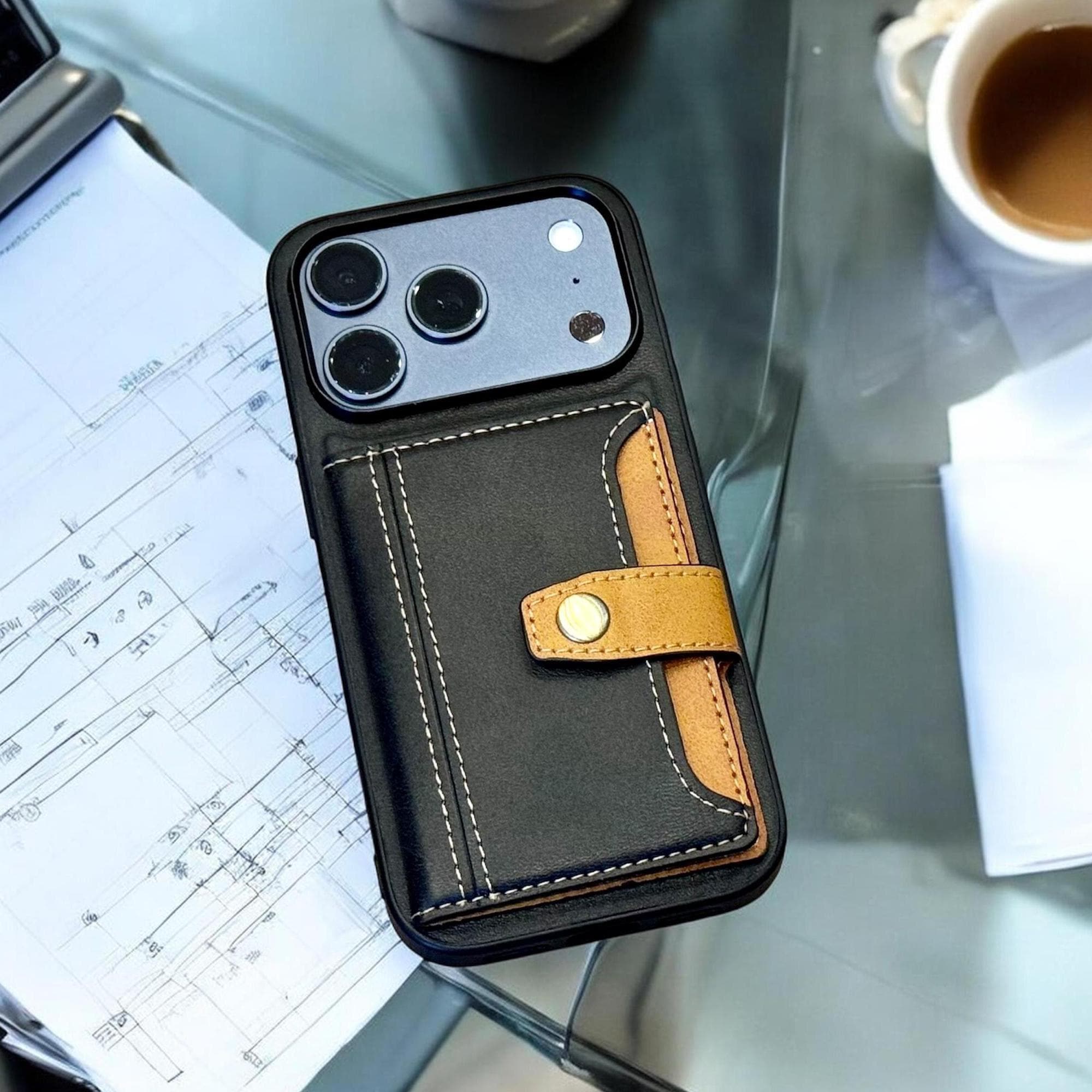 Leather Wallet iPhone Case for 17 16 15 Pro Max with Card ID Holder & Cash Pocket