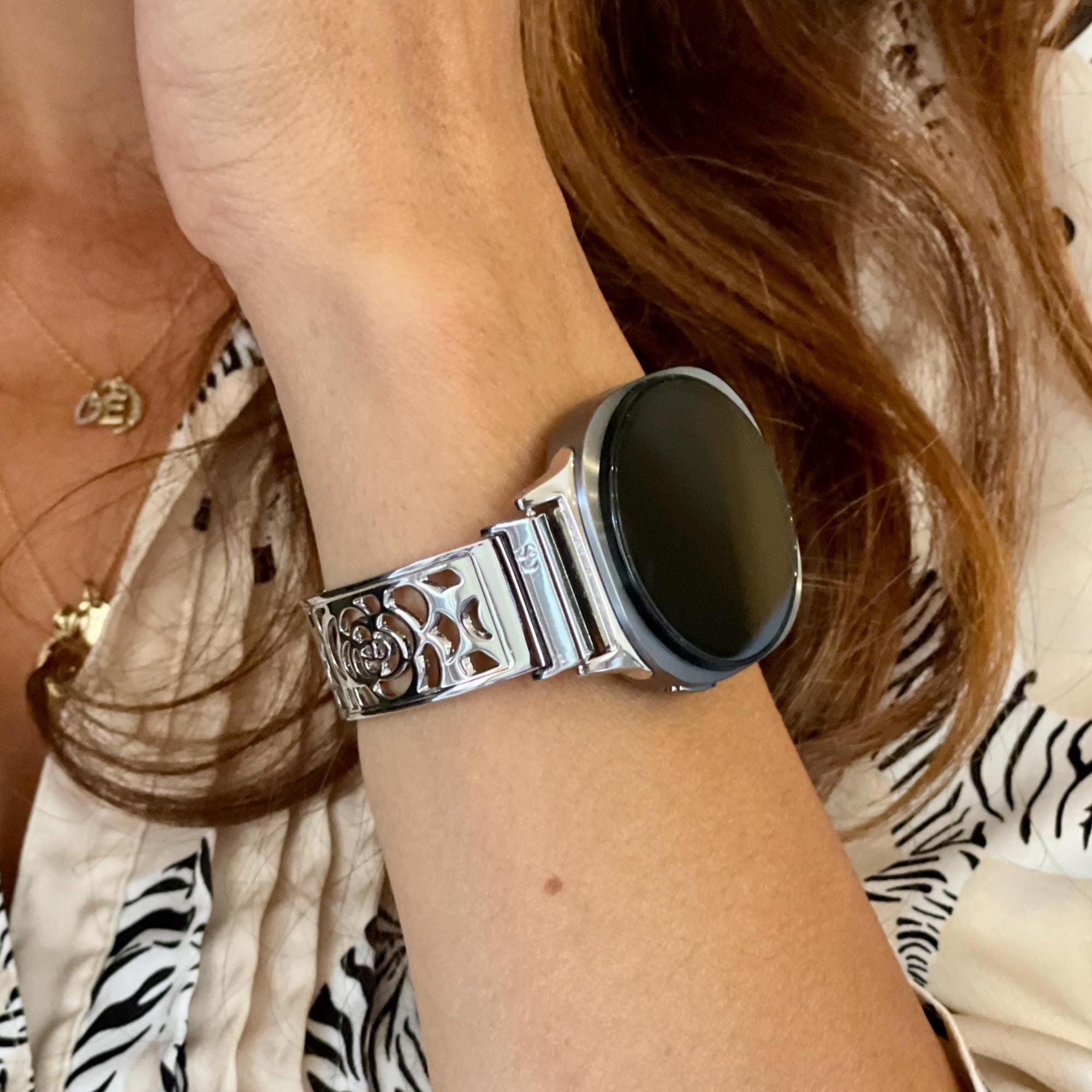 Silver Metal Galaxy Watch 8 Band Women Bracelet, Adjustable Links Strap, 8 Classic Bangle