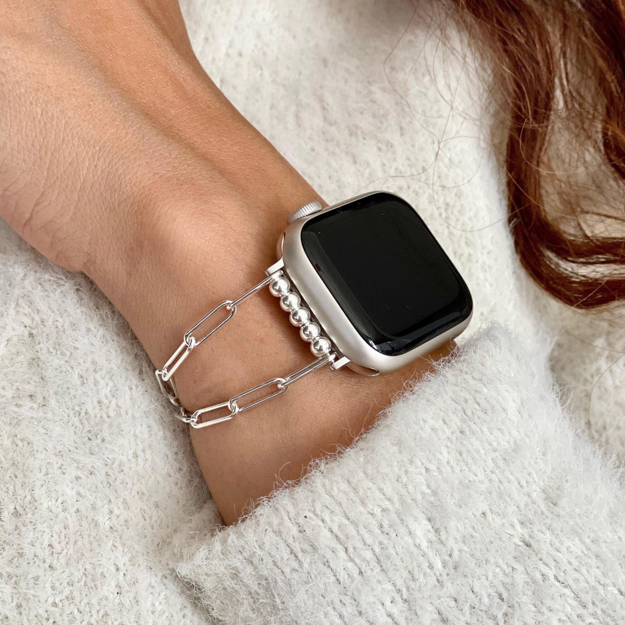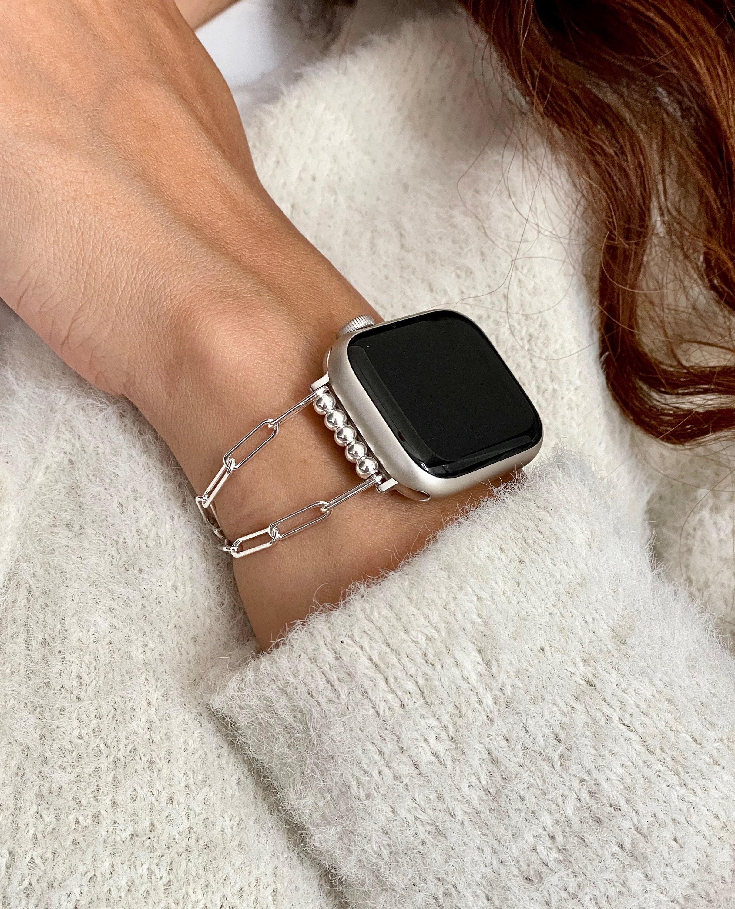 925 Sterling Silver Apple Watch Band Paperclip Chain Strap Bracelet, Custom Women Jewelry