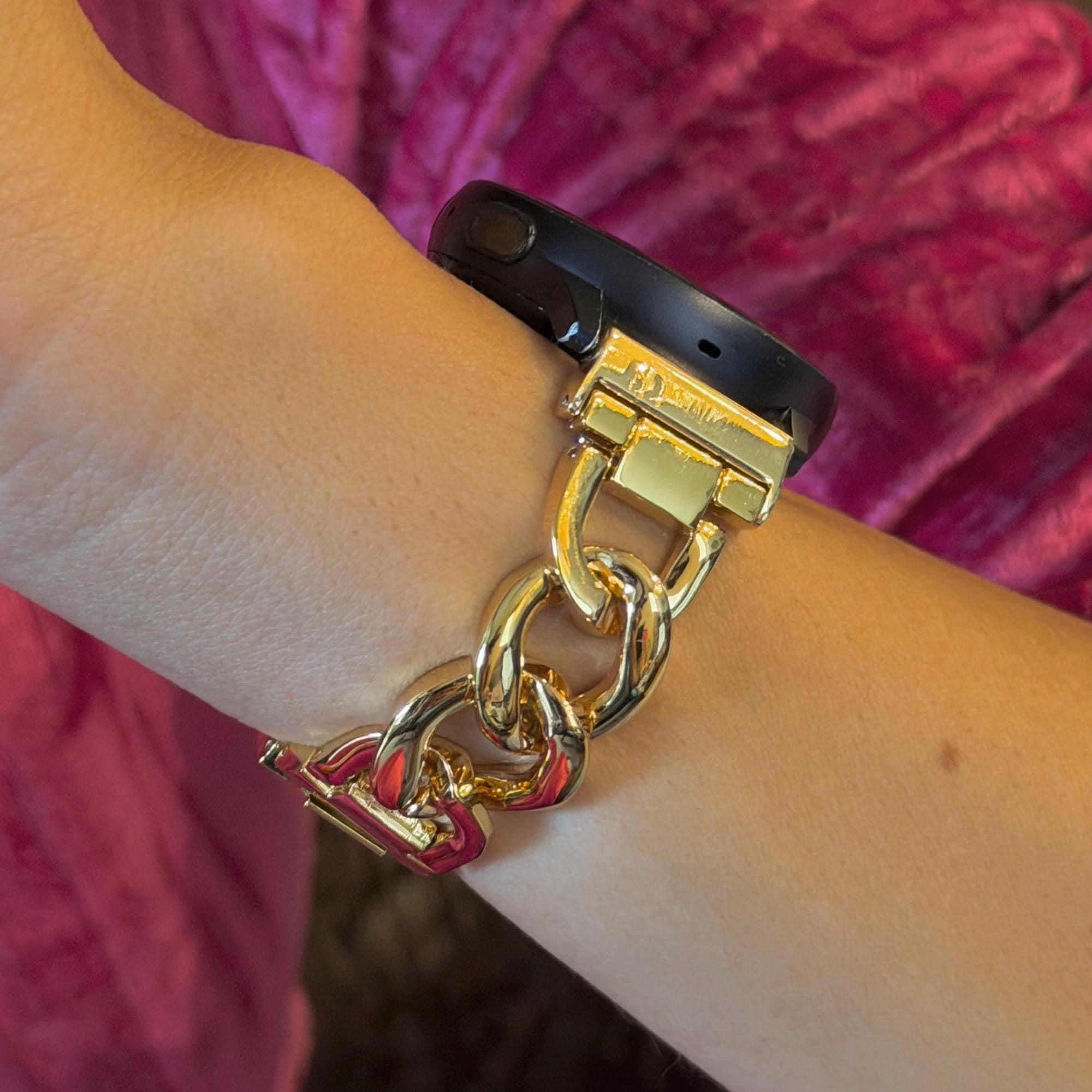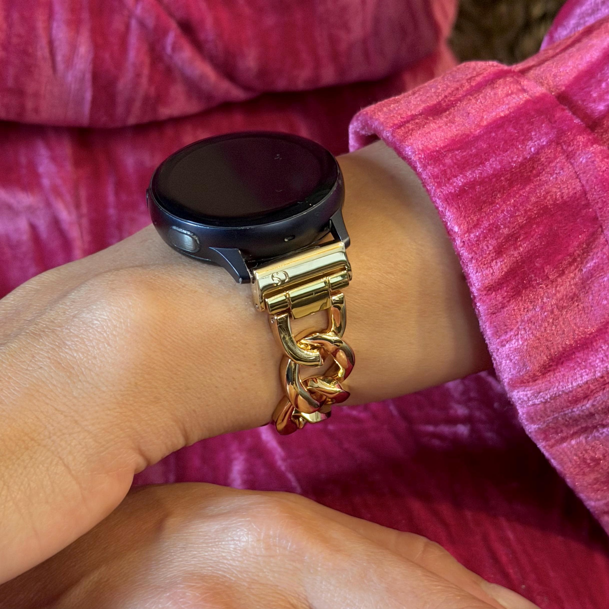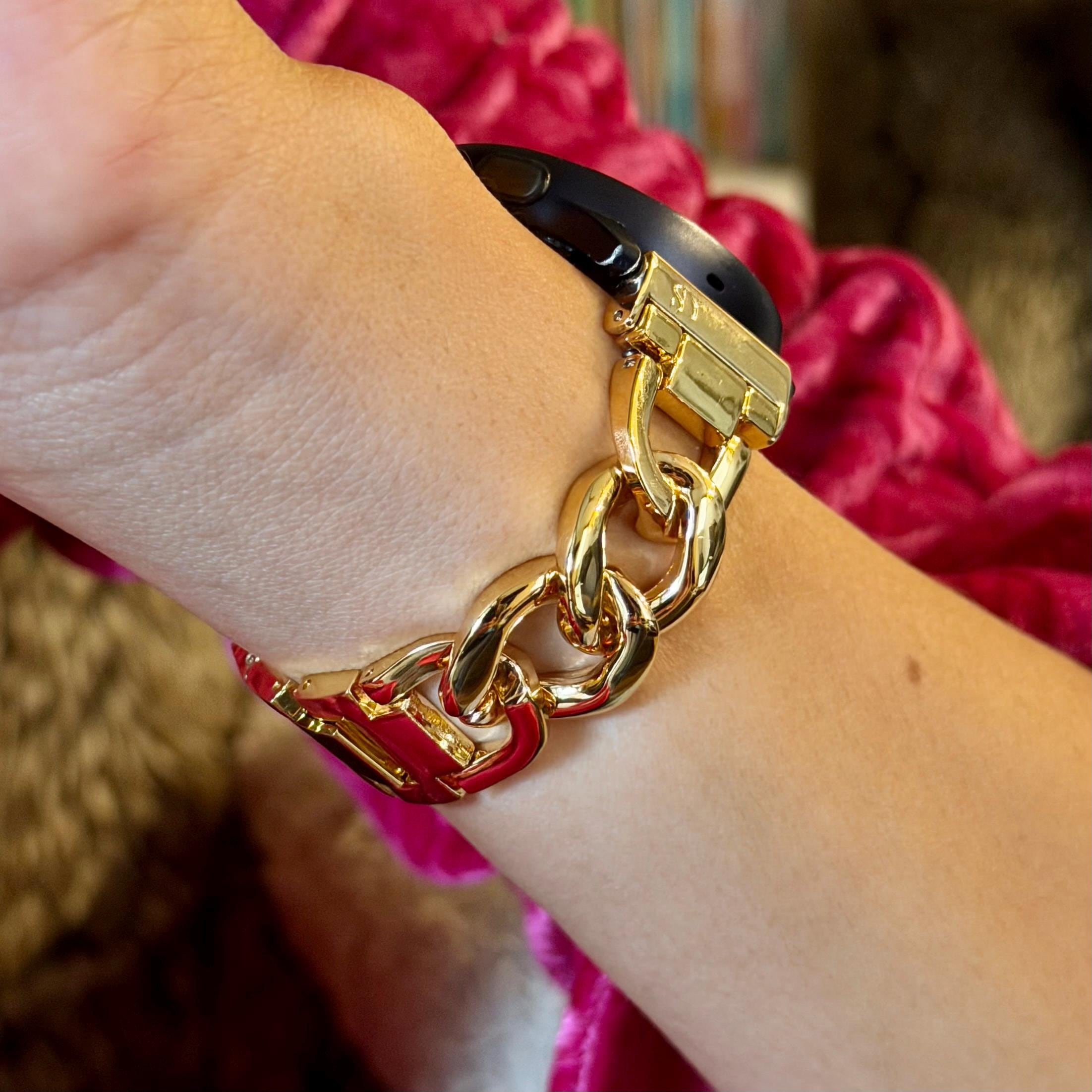 Gold Samsung Galaxy Watch Band Women Charm Bracelet, Adjustable Links Jewelry Strap.