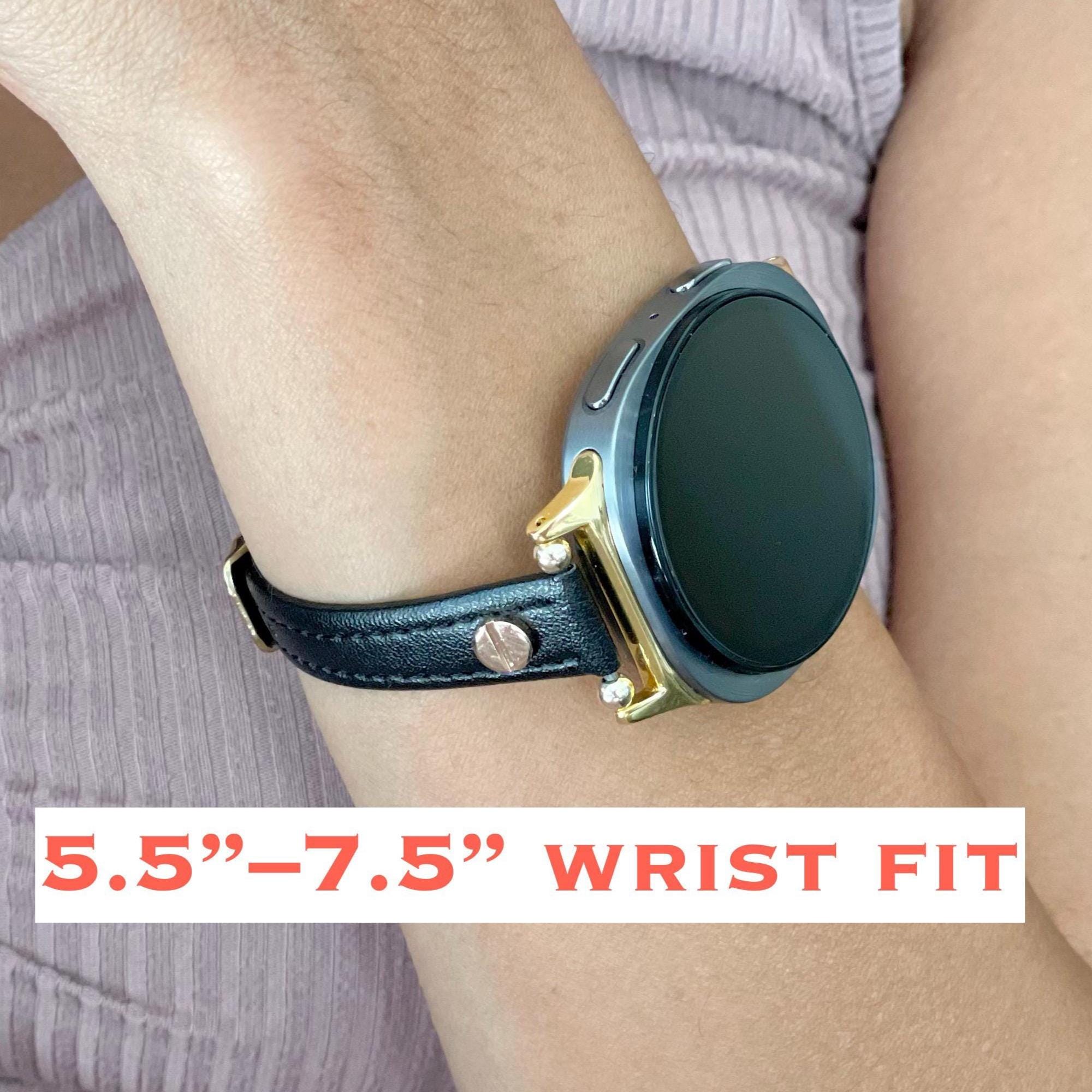 Slim Leather Band for Galaxy Watch 8 & 8 Classic, Black, Adjustable, Gold or Silver Hardware
