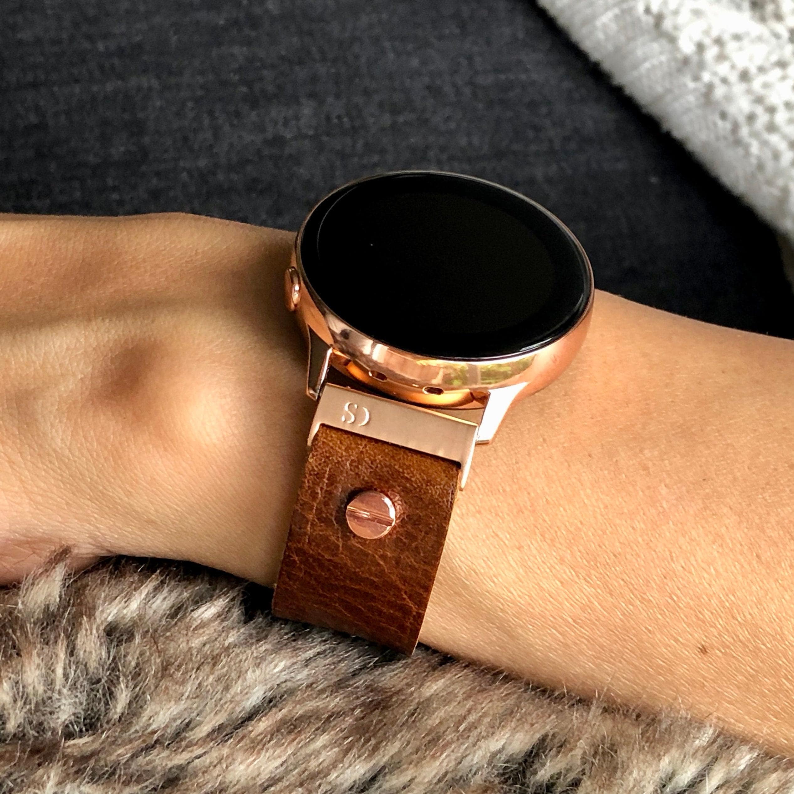 Galaxy Watch Brown Leather Band, Series 7 6 5 Strap, 20mm Genuine Leather Bracelet
