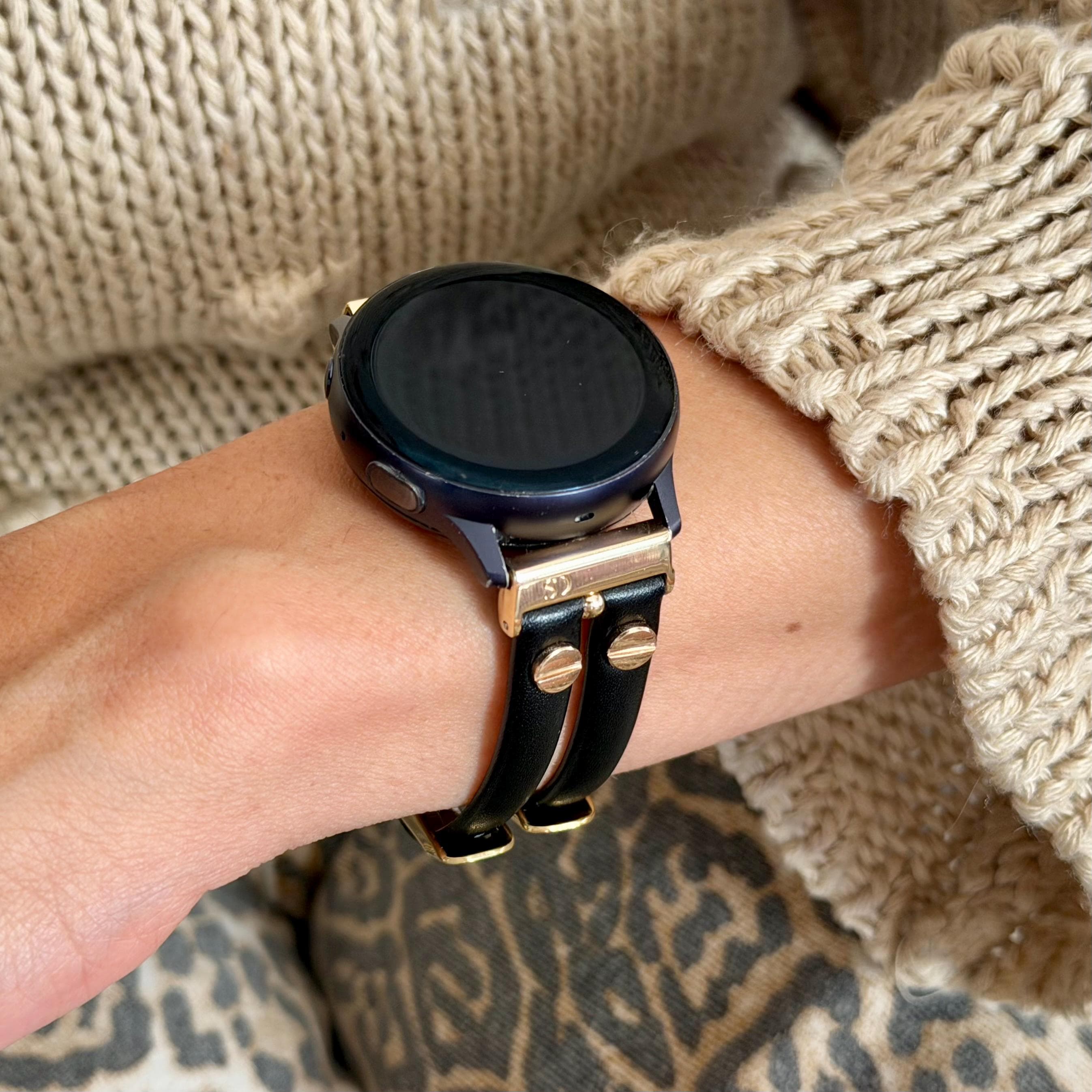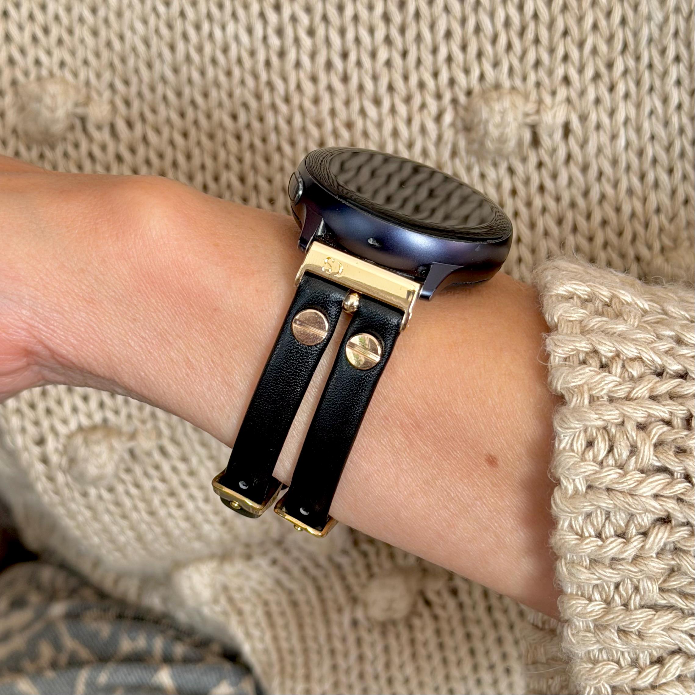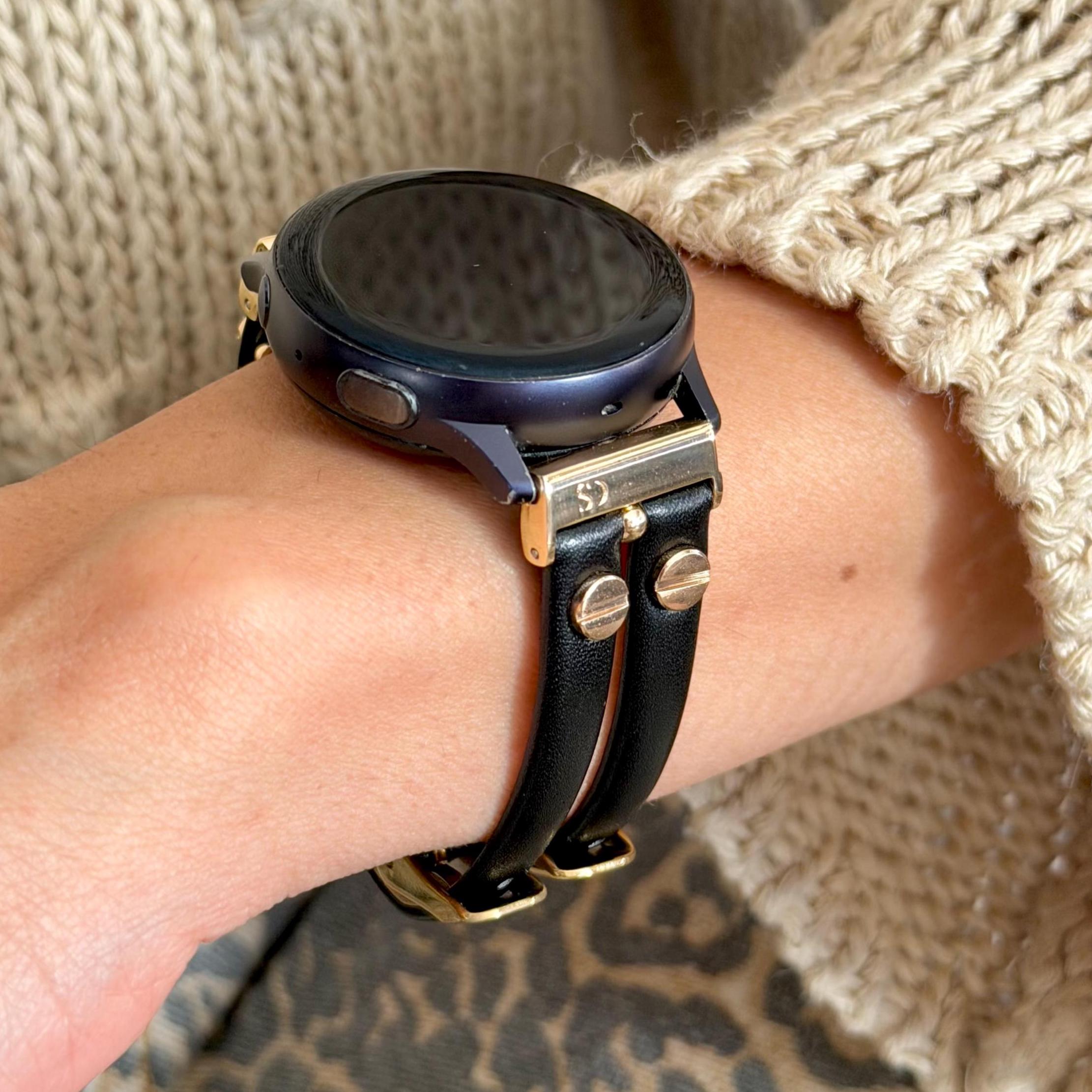 Black Galaxy Watch Leather Band: Gold Double Strap for 7/6/5