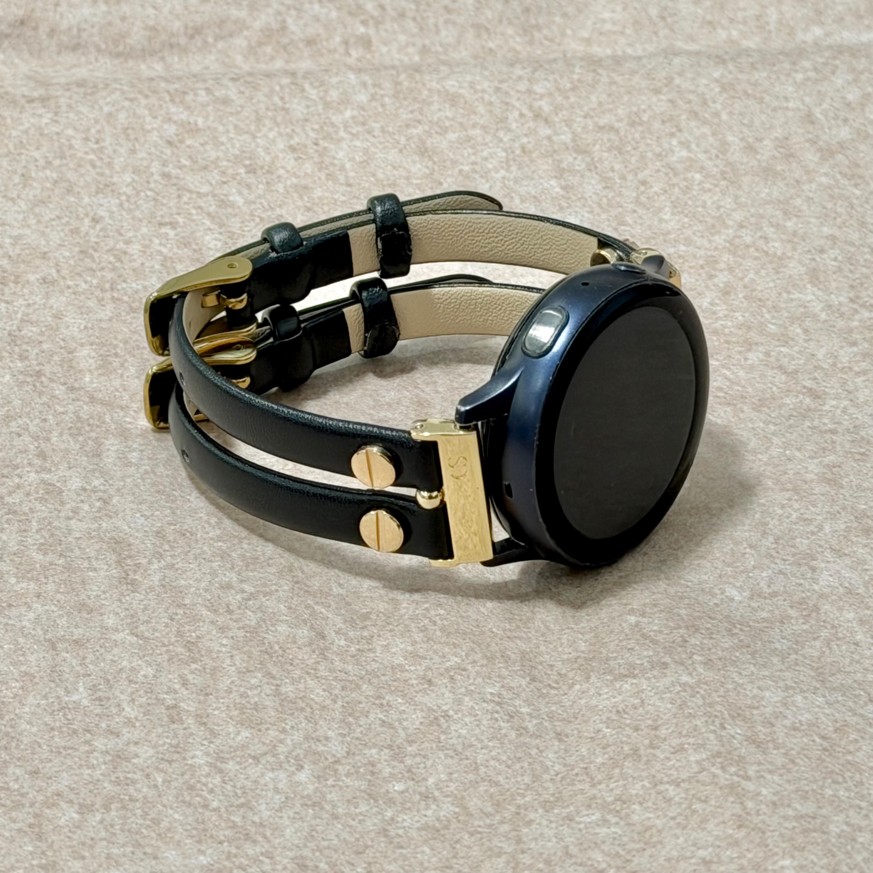Galaxy Watch Band Black Leather Gold Double Strap for 7/6/5
