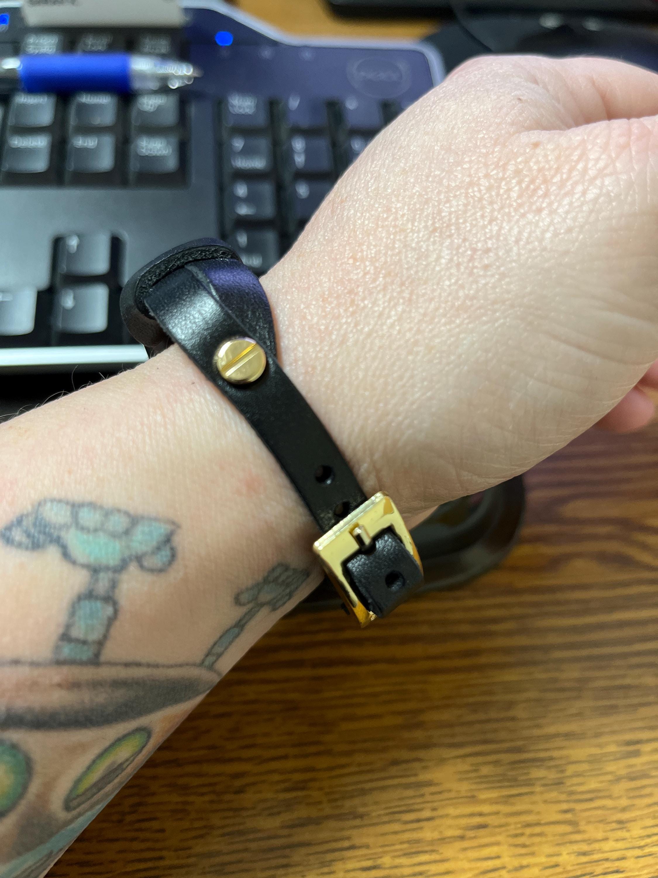 Gold & Black Leather Fitbit Inspire 2 Band: Adjustable Jewelry Bracelet